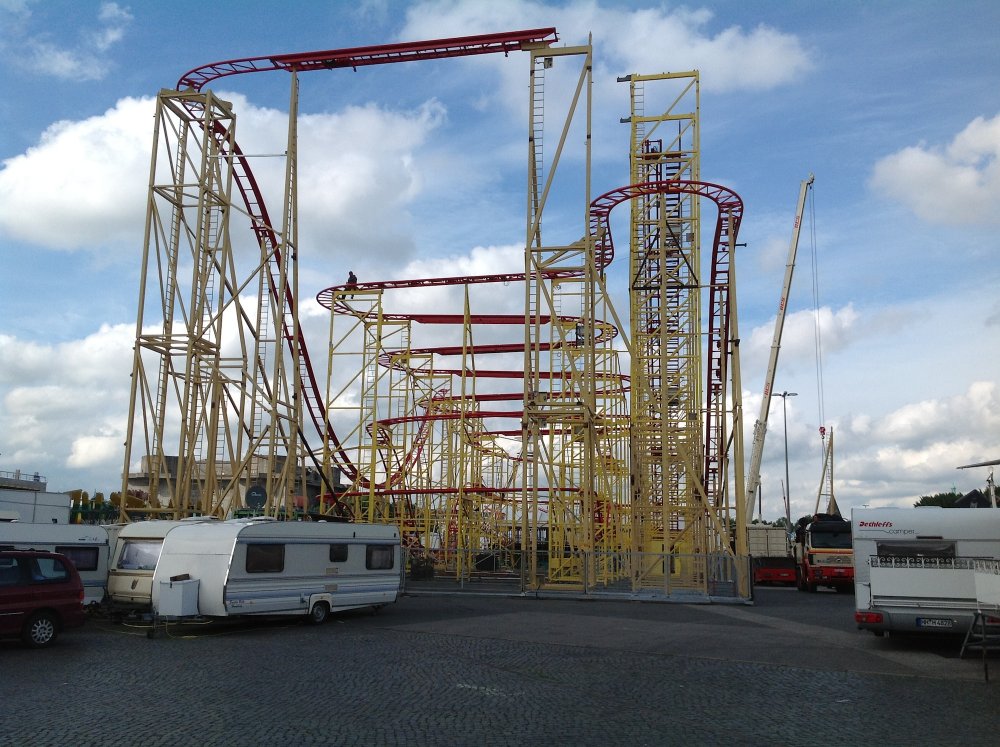 20. I drove past the fairgrounds yesterday and they have about half of the Wildemaus XXL up. I didn't have time to stop and get a picture, but if the weather is nice® today, I'll see if I can make it happen. The track that was already standing does look newly painted, and there is an "extra" curve after where the lift hill would have been on a traditional Wildemaus. I can't explain it very well, but you'll see what I mean if I can post a picture