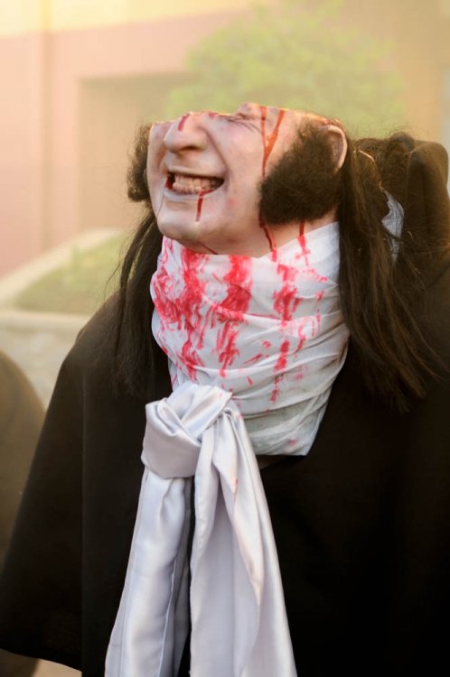 I just returned from my annual Orlando trip and I brought some photos from Halloween Horror Nights to share with you guys. I have been visiting the event for a couple of years now and I have to say: this thing has become humongous. Shows, several huge scare zones, 10 haunted houses. I was really happy that I booked one of those R.I.P. tours. The tours not only greatly reduce the waiting and walking, but also provide international guests with some background information about the movies the houses are based on, as not all of them make it to Sauerkraut Country (or are even banned here). Okay, enough bad english for today. Let's look at some pictures, shall we? The start of the event came with a pretty pretty sunset And with some pretty ugly monsters This scare zone has been principally concerned with the over-use of plastic surgery Clever girl: bringing a replacement head - just in case Why is this place called a "scare" zone? Random Zombie Electrocution plus spanking. Isn't that weird or what? The Rob Zombie scare zone Never gets old. Bad hair day? O thanks heaven: a nurse! Oh man, this scene would be so banned in Germany ... Vikings eating slimy stuff Space Baby That girl was randomly spanking guests. Kidding. The event would sell out immediately if she would. Back to the video game "scare" zone Great lightning and tone Fashion show à la HHN You simply cannot post too many pictures of those stilt walkers, can you? -