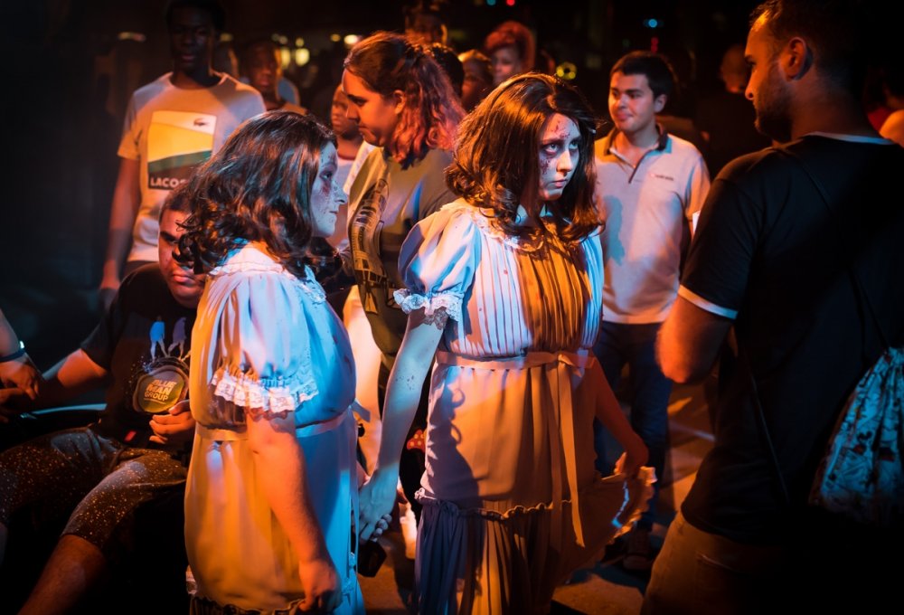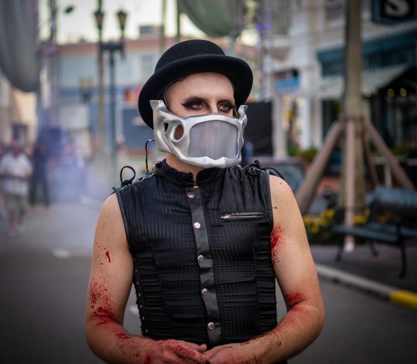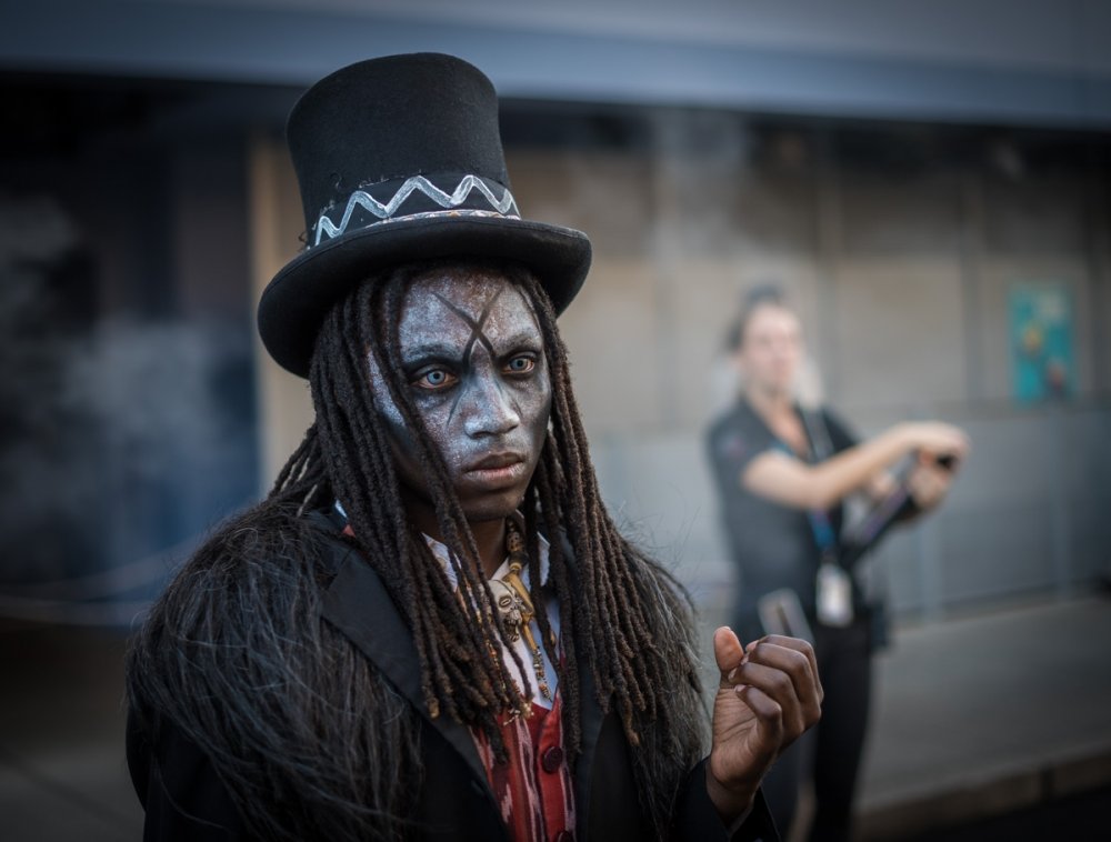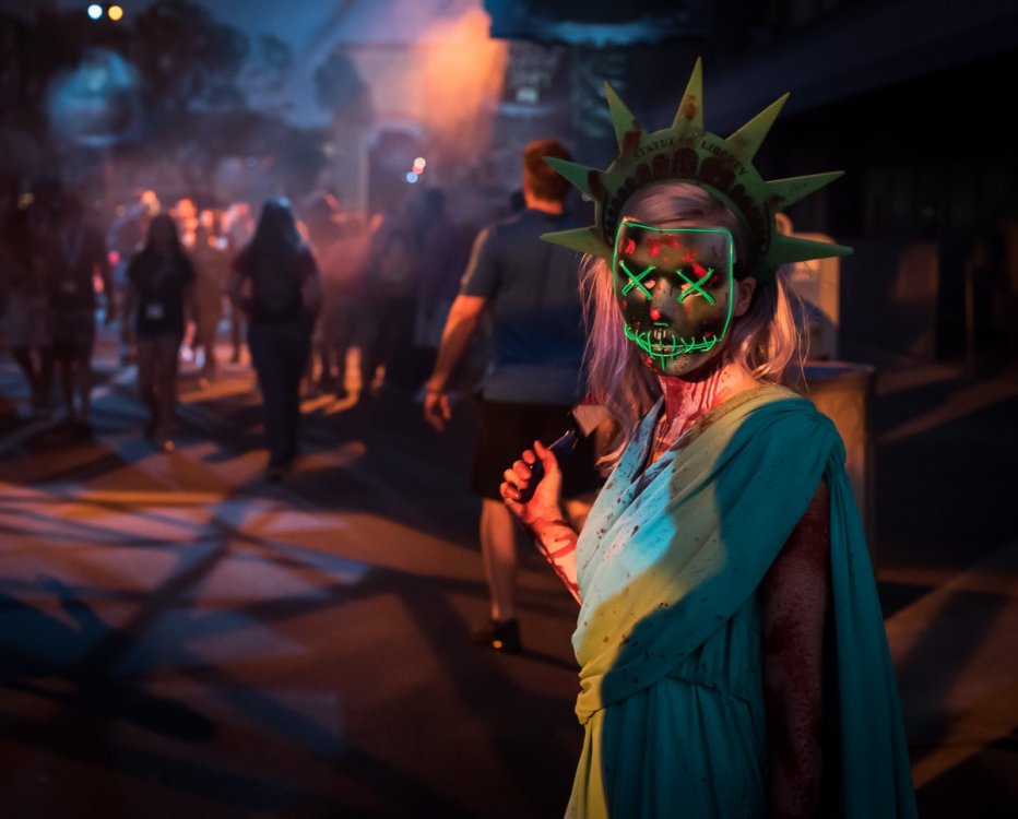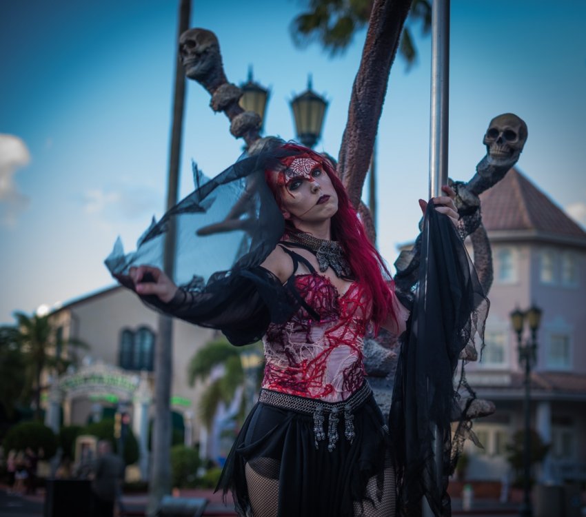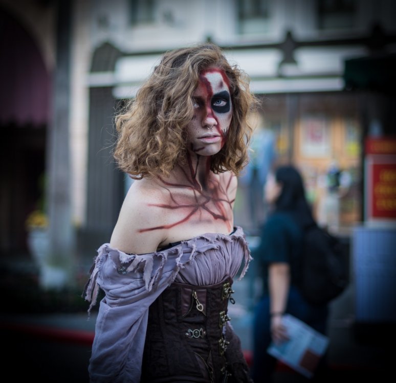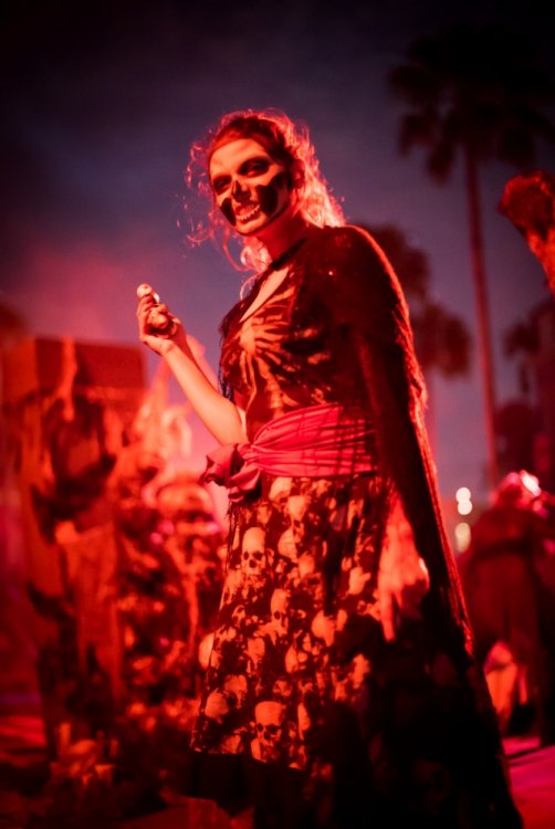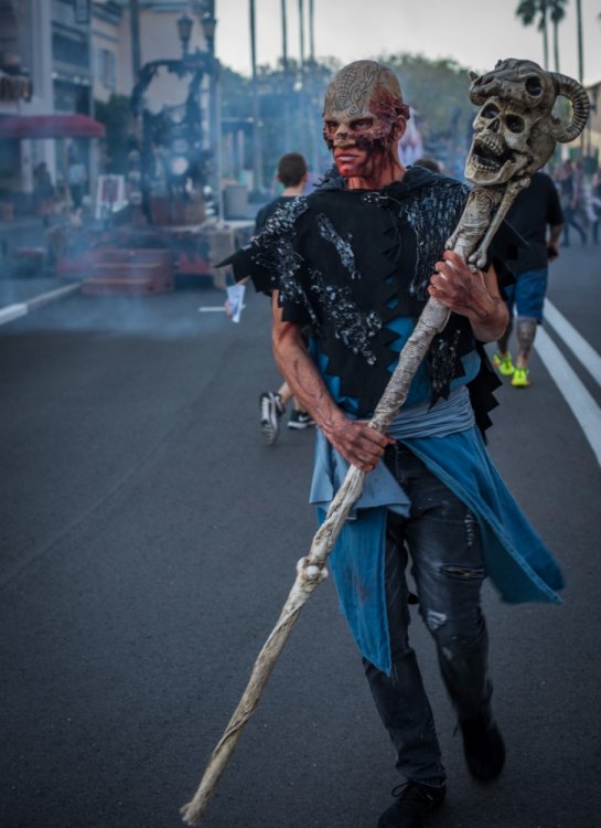 Glad you guys like the photos. I am still using a Nikon D850 which is terribly big and heavy but shines in low light conditions. This year I really cannot say which scare zone I liked the most. The stilt walkers were a head-turner but not scary at all. The concept of "plastic surgery taken to far" in Vanity Ball was great. And yes - the Rob Zombie thing was "interesting" too. But I also liked the super creepy "Vikings" zone. Nahhh... Nothing beats those stilt walkers Nothing beats those stilt walkers -