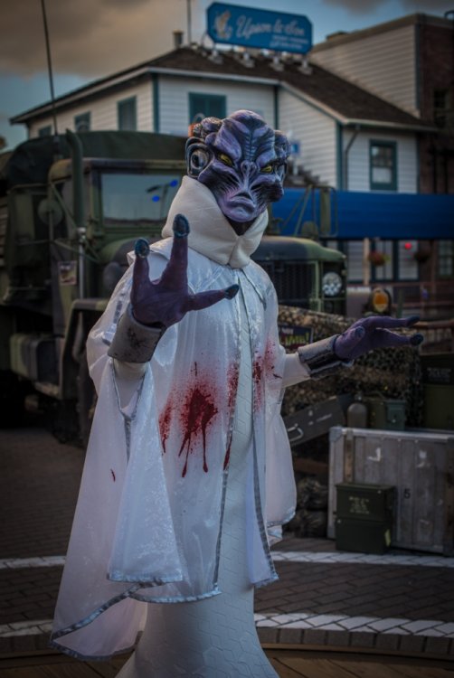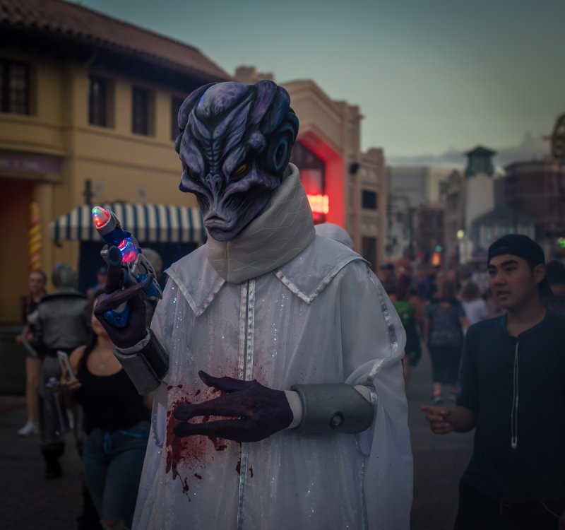While my favorite travel time in autumn is the end of October, I chose a way earlier date this year. This enables me to share some HHN pictures with you, while the event is still running. I was looking forward to the “Shining” house and it did not disappoint. Overall these Halloween Horror Nights were packed with nine incredible houses and lots of scary street entertainment. A great event, and everyone who has the chance to should really see it, while it’s still running. He is in a particular bad mood tonight And she is not really better It's way easier to snap some pictures while there is still a little daylight left Cute, isn't it? Anyone for princess dinner tonight? Even more wicked princesses Evil clowns work. All the time. Nice teeth! I like those scare zones The evil lurks around every corner Impressive stilt walkers Some voodo Meet the grady girls Hello Mr. Alien! Hello Mr. Alien Overlord! Hello grandma! Night starts to fall What are YOU looking at? Raygun United we purge Support the purge A really cool outfit That guy was really impressive More evil stilt walkers Sexy bloody dancers all around Some atmosphere shots The classic "die in" joke UFO crash site The twins from shining were insanely creepy Big eye horror HHN featuring death himself The "inverse bear trap" from SAW One lady in red Good bye HHN. It's been a GREAT event! -