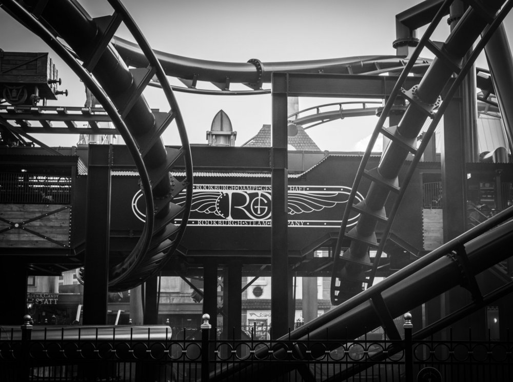 Yes, this is nothing near your childhood's SLC … I went to the parks the other day and brought some new photos. This time in black and white. Enjoy: American first time visitors are often surprised how blurry german people are. Trains cross this trench a couple of times during their flight. And here's where they come out again. As the old Lufthansa slogan said: „There's no better way to F.L.Y.“ If you look really, really close, you can see the Vekoma train in this picture When it comes to fog effects, you just can't "overdo" it!