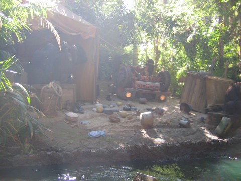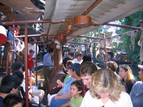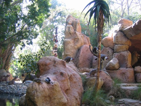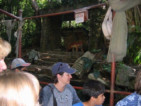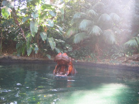 Day 2 – We started off with room service. This worked out great because we didn’t have to get up extra early to go get something to eat. We arrived at DL just a little after 9am and it was already crowded, much more than yesterday. I thought this was strange because I would have expected a bigger crowd for Saturday rather than Sunday. We headed straight to Space Mountain to get our FP and then took in the Jungle Cruise in Adventureland after getting our FP for Indiana Jones. When we got off the Jungle Cruise, we got another FP for Indy for later. At this point we had FPs for Space Mountain and 2 for Indy. Since DL was a little crowded and we didn’t do everything at DCA the day before, we headed over there. We got our FP for Soarin’ and then went to ride Monsters Inc. There was an hour wait for this ride. We bit the bullet and waited. This wasn’t worth the hour wait. After Monsters, we wanted to see the Turtle Talk with Crush show, but we were too late (we would continue to miss this show the rest of the time). We picked up our FP for ToT and then used our preferred seating to watch the Aladdin show at 12:30. This show is so good. Don’t miss it. It is over an hour long, but the show is fantastic! We tried to see Crush again, but missed it. Our preferred seating was also good for Golden Dreams. This was a neat show and not too long. If you have the time, go see it. We rode Mulholland Drive next in the Single Rider line and got FPs for that one too. Pizza Oom Mow Mow was one of the places where we could get our free drink re-fills, so we went there for lunch. After lunch we road Maliboomer and then went to Screamin’ to pick up a FP and ride it from the single rider line. We had priority seating at a Bug’s Life, so we did that next. This show is just like the one in Florida. The parade was getting started after we got out of Bug’s Life and we watched that on our way to use our FP on ToT. On our way to the hotel to change, we used our FP for Soarin’. When we got back to DCA, we went to Mulholland Drive and gave away our FPs to a couple that just started to wait for the ride and then road Screamin’ with our FPs there. It was in the dark and we rode the front seat. This was a great time! We went back over to DL to use our FP on Space Mountain. After Space Mountain, we had dinner at the French Quarter and watched Fantasmic! As I mentioned in day 1, the fireworks would end up being cancelled. We used our Indiana Jones FPs and then headed back to the hotel. We had drinks at the Hearth Lounge and then upstairs for some much needed rest. The snakes are in the tree, but if you look at the water, you can see the bubbles from the piranhas I don't know what's in this picture. The natives might have something to do with that. I guess these guys didn't make it out of here alive. Maybe the hippo is going to eat us. These guys look like they are having a little problem. Vultures are waiting for the leftovers. Those lions are hungry. A more peaceful setting of animals. Lookout, they are everywhere! Attacking elephants, hmmm looks nice and calm up ahead Someone had some car trouble. The monkeys are just to the right in this picture. Elephant taking a bath There's a tiger, run! Look out for that aligator! Scary waters are ahead and our very excited boat This was our crazy tour guide. There was a wait to get on board, but it wasn't too bad. Another pic of the Jungle Cruise entrance This one, not so elusive The elusive cruise ship We rode the carriage back and Red was our horse There's that Goofy guy thinking he's a star! They were even starting to line up at DCA People everywhere Way more crowded than Saturday Room service, maybe I should have taken the lids off of the plates for the picture....