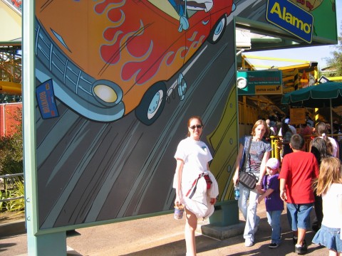 Day 3 – Last day and check-out. We checked out of the hotel and they stored our bags because we weren’t leaving until 3:45 for our flight. This was the day to finish everything up and ride some things that we wanted to ride again. Disneyland was really crowded on Monday. We wanted to use the early entry into Mickey’s Toon Town, but we didn’t get there early enough. It didn’t matter anyway because we were there at 10am for the opening. On the way back to Toon Town, we got our FP for Space Mountain and Autopia. Matterhorn was already crowded. In Toon Town we road Roger Rabbit, took pictures and went through Mickey’s house. I tried to leave in his car, but it wouldn’t go. After Toon Town we went to Frontierland. I wanted to ride the cruise ship, but they had the pirate ship operating at this time. We took the raft to Tom Sawyer Island and played around there. This was definitely for the kids, but we had fun! We headed back to Space Mountain only to find out it was shut down. We used our FP for Autopia instead. Once we got off Autopia, we noticed that Space Mountain was running again and it had an hour wait! Good thing we had our FP. We rode SM for the last time and then took the train from Tomorrowland to the front of DL. We saw the first 50 years show with Steve Martin and then headed to DCA to try to see the elusive Crush show. Once again, we didn’t make it. We also didn’t want to see the Muppet 3-D show since it was probably the same as Florida’s version. On our way back to the hotel, we rode Soarin’ one final time and then decided to wait at the hotel for our ride to the airport. I am so glad we didn’t rent a car or have to drive anywhere because the ride to the airport was very long and the traffic sucked. We both fell asleep on the way. Thanks for reading! Gyendolynne by the plane in front of Soarin' over California. Disneyland 50th anniversary museum NOOOO! I am not pure of HEART! AAARRGGHHH! Gyendolynne, get in here close.... Now, on with the sword story.... I know I am pure of heart and I can pull this out... Lunchtime at El Rancho's fountain If I was actually climbing the tree, I think I would break the branch. If you're not a kid, this island might make you into one. Yep, I am walking backwards on this. A very. sturdy bridge on Tom Sawyer Island I know it looks like she is going to get wet, but she isn't even that close to it. This turned out to be a pretty cool picture when we got a chance to look at it. Nice American Flag on the back Here's the pirate ship Another picture of Fantasyland This Merlin guy has a curse on the sword, I will get back to this later.... The Roger Rabbit fountain I'm glad we rode Roger Rabbit on the way in because on our way out it was broke down. I thought I could get away in his car, but it wouldn't go anywhere... Here's the star of our show! I don't think Donald finished his job. We're at Mickey's house. I love his piano. Another taxi ride, is this Monsters Inc.? Here's the loading queue Can't believe these delivery times! VERY short wait Rode Roger Rabbit first thing. All the way to the back for Mickey's Toon Town Main Street, not looking too bad, but can you see the castle?? Lets take the fire engine back this morning.