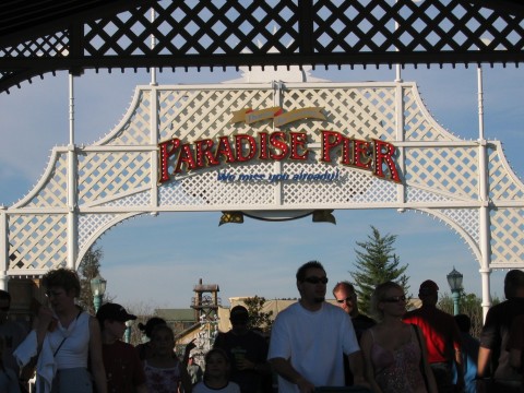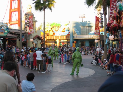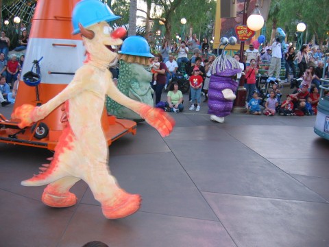 pics continued I don't think these people standing were told that this is the happiest place on earth! The army dudes starting the crowd for the parade. But not before trying on the Elton John glasses. Now we can enter the theater Where's FLICK! I'm going to be a Beautiful Butterfly.. Just because I'm a Lady Bug you automatically assume I'm a LADY! We're in a Bug's land now. or this one. Another Pier shot, can't have enough of these. These kids were scared to death to ride this. My group of Fastpasses yep, that's where we're at. Mulholland Madness... After the tower, we needed to go to the pier for Maliboomer.... Thank goodness we're out of that. Now we're heading over to the ToT. The following are some pics from the ride. They're all self explanatory. in a taxi cab driven by this guy! Yep, we're going to Monstropolis Some snacks where we can wait an hour for this ride! Lets go to DCA..... Man Main Street got crowded early today... Another "secret" 50 anniversary. This guy has a head in his right hand -