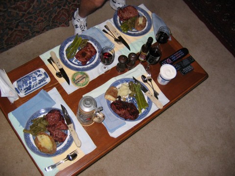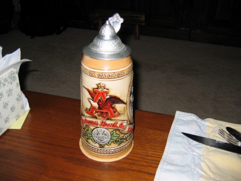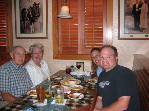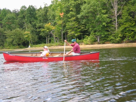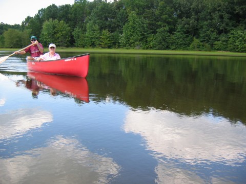 9. Hi everyone, We went to Virginia over Labor Day weekend to visit Gyendolynne’s parents. While we were there we went to Luray Caverns, drove by Shenandoah National Park, paddled the canoes on Ni River Reservoir (from Dave & Sue’s backyard) and we went to Carrabba’s for the first time. Other than that, we hung out, BBQ’d and enjoyed our visit. There will be a couple of pages of pictures. You can see the wood to the left of us. There was an island there where some people camped. We hooked up and rowed together for a little bit. After some paddling, it is just nice to steer. Dave paddling away. A picture of one of the coves. We are off and so far, so good, we stayed dry. Now, onto our Canoe trip around the reservoir. First we had to get our canoes in the water. MMMM...Dinnner is served! Dave has a great collection of beer steins. I chose this one for Wally. Some rib-eyes for dinner. Are you getting hungry Wally? A drive by Shenandoah National Park on the way home. Many different modes of transportation throughout this museum. We headed over to the car museum after the tour of the caverns. The final underground pool. The four of us at the end of the tour. There is an organ connected to the stalactites. The stalactites are used as the organs pipes. This was taken while looking straight up! Not a place to be if there is an earthquake. Another shot of the caverns Rick in front of the "curtain" this thing was huge! Another underground pool. This is a better pic of what was behind Gyendolynne. Geyndolynne in front of the last stalactite that has fallen in the caverns. Rick in front of some stalactites The world's dirtiest teeth There are underground pools of water. They look really deep, but that is actually the reflection above. Main area when you go down the steps into the cavern, the pictures don't do it justice to how big this really is! It is a National Landmark! We made it here We found this funny that Antique tables were made DAILY!
