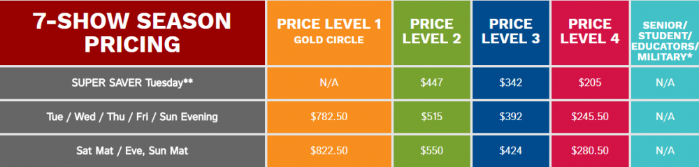 Costs are quite interesting. Prices depend on seating, so better seats cost more, but it can be anywhere from $205 to $822. I'll put a picture below. This is for all 7 shows of the season