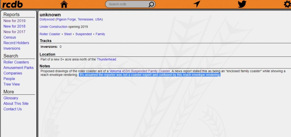 Well it seems as tho the guys at RCDB have the same ideas we have. Also dang they went right in on that news reporter lol. Also HFE has worked with Vekoma in the past. at Wild Adventures in Georgia there is a SLC, Boomerang AND a Suspended Family Coaster but its the smaller model. -