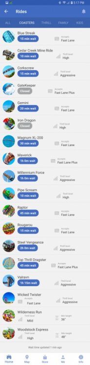 You can use one of those GPS spoofing apps - I don't know if they have them for iOS - and then go into the CP app.I've been following the wait times all day because I'm trying to plan for my visit a week and a half from now. It hasn't been perfect, but when combined with the webcam, you can get a pretty good sense of what's going on in the park. I noticed Gatekeeper has shown as down all day, even though it's clearly running haha. Here's where things stand now. It looks like everything has opened today (except maybe iron dragon??), albeit not all at the same time.