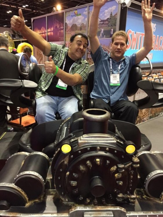 More!!! ZDT's @thegravitygroup shuttle woodie will feature a locomotive themed Timberliner train! Just taking a ride on the new Gravity Group train with Duane from RCDB! Always love Premier Rides! Can't go to IAAPA without getting an ICEE! The Koch family and their awesome Thunderbird train! The Maurer Sohne booth! The IE Park Booth -
