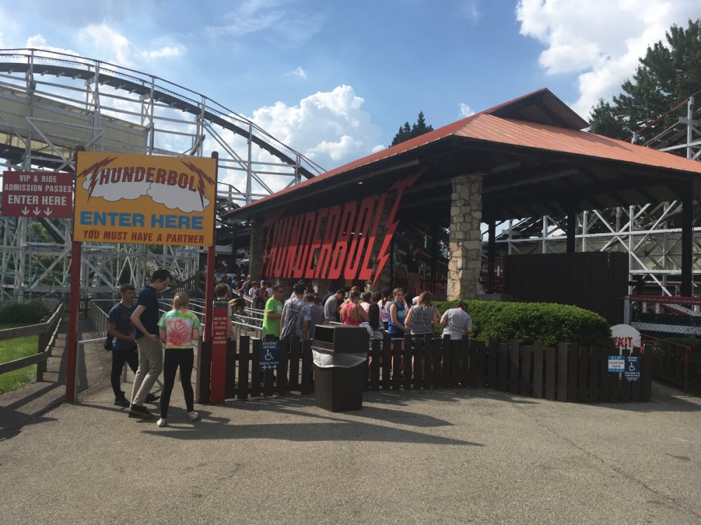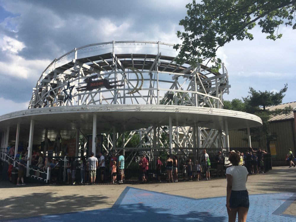 Our third park took us on a 2 hour drive over to Pittsburgh to experience a park that I had wanted to visit for a long time – Kennywood. We arrived right before opening and could tell that we would not be as fortunate with the crowds as I was the day before at Waldemeer. There seemed to be a lot of schools on field trips and a lot of families as well. So much for going on a Tuesday. The park was so charming and really seemed to me like taking a trip back in time. So many cool older rides and so much history. Loved it! The park was super clean and because it is on the smaller side, pretty easy to navigate. Front Gate Got to experience most everything I wanted to with the exception of Sky Rocket and Ghostwood Estates. I believe SR was shut down just a day or two before we visited due to the ongoing issues it is experiencing. Ghostwood Estates, for some reason never did open. Now onto the rides; Jack Rabbit – Truly a classic! Running two trains, maybe a 10 minute wait. Kind of a weird restraint system with the static bar and seat belts unlike anything I had seen before but allowed for some great airtime. I was blown away with how smooth this was, which was true of all the woodies here. The double down definitely delivered the requisite ejector air! Great ride! There are some 10 year old woodies that could learn a thing or two from this 98 year old! 7.5/10 Jack Rabbit Jack Rabbit Sign Racer – A second nonagenarian coaster in the park sitting just a few steps away from Jack Rabbit. This one had about a 20-25 minute wait as there was only 1 attendant checking both sides of the platform, so it took a long time to dispatch. Really fun ride and again, super smooth for a wooden coaster. The racing aspect just added to the excitement. Rode both sides. Felt about the same on both. 7/10 Racer Sign Thunderbolt – What a looker! Love the layout and the trains look amazing. What was not amazing was that one of the amazing looking trains were on the transfer track and not running at all. So there was only one train and a long line. We waited about 30-40 minutes. I will say, however it was more than worth it. From the drop out of the station to the very end, a terrific ride all around. It literally has everything you could want from a classic woody. Great air, nice laterals and smooth, smooth, smooth. An absolute classic in every way! Definitely a Top 10 woody for me. 9/10 Thunderbolt Queue TB Exterminator – I had low expectations of this going and I was glad that I did. It wasn’t terrible but the wait to ride was. We got in line once and, although there was not notification or any communication we eventually assumed it was down, as the line never moved for 20 minutes. We eventually left the queue and came back later. When we returned the line moved, but it was snail slow. Overall we probably waited an hour. The ride itself was meh. The actual car was cute and the theming was pretty good. Not the worst mouse I have been on and nor the best. 5/10 Exterminator Phantom’s Revenge – They started out running 1 train but we noticed while waiting for Thunderbolt that a second train was added. Good thing because the wait was still north of 30 minutes. In addition once we were seated, there was an issue with the train. We had to disembark and wait for maintenance. Another 15 minutes or so and we were back in business. Holy cow, this thing rocked! One of the very best I have experienced. From the comfortable trains to the layout and everything in between, it was awesome! The second drop, as advertised, was killer! The airtime was terrific. Overall a superb coaster. Got back in line and rode a second time. Rode in the back and the front. Couldn’t really say I enjoyed one more than the other. Both great, just different. Moved into my top 10 overall. 9.5/10 Phantom Sign Phantoms Revenge Also rode a few of the other rides in the park. Black Widow – Kennywood’s giant discovery was intense and had some nice airtime. It feels every bit of the close to 70mph that is advertised. The wife enjoyed it more than I did. We waited about 30 minutes to ride. Black Widow We did the 4-D Theater as well, since it was 90+ outside and we needed a break in the air condition. The movie was OK, the same with effects. Nothing special but was worth the time to get some relief from the heat. Noah’s Ark – Kennywood’s walk through fun house. This was weird, wacky and I really enjoyed it. The effects were well done and all of them seemed to be working. It is nice that the park shows so much love to their older rides. Due to time restraints and longish lines we didn’t get to Kangaroo or Bayern Kurve. Didn’t eat very much, although I did try the Potato Patch fries. They were good but not great. The fries had good flavor and plenty of cheese and bacon. The fries could have been crispier, which is what I prefer, but they were still tasty. By 6:00 pm, we were exhausted and due to the 2 hour drive back, we headed out and made our way back to our temporary home away from home. Even with the crowds and the less than stellar operations were able to hit all the open main attractions. Would have liked a couple more rides on Thunderbolt and Phantom, but that gives me reason to return, especially with the new coaster most likely going in next year. It took a many years to finally get here, even after growing up just a couple of hours away. It was worth the wait. The park is wonderful. As I said before, it is a beautiful, charming park with a great lineup of rides. I love the fact that so much time, care and pride is taken by the park to keep their classic rides in such great condition. Definitely something the other large chain could learn from. Kennywood from the parking lot