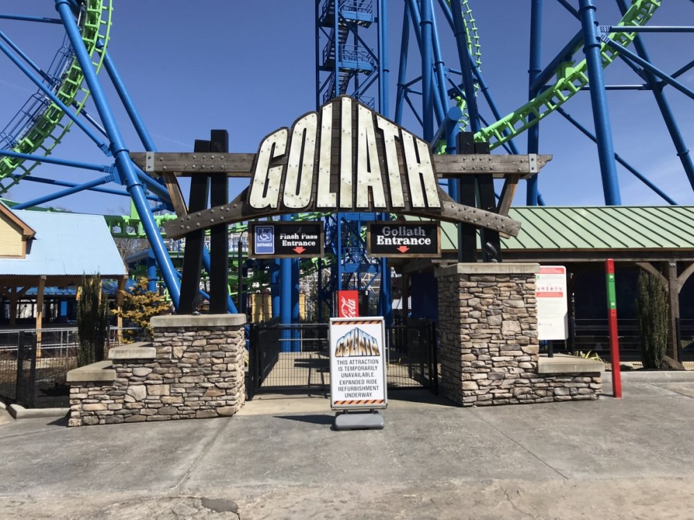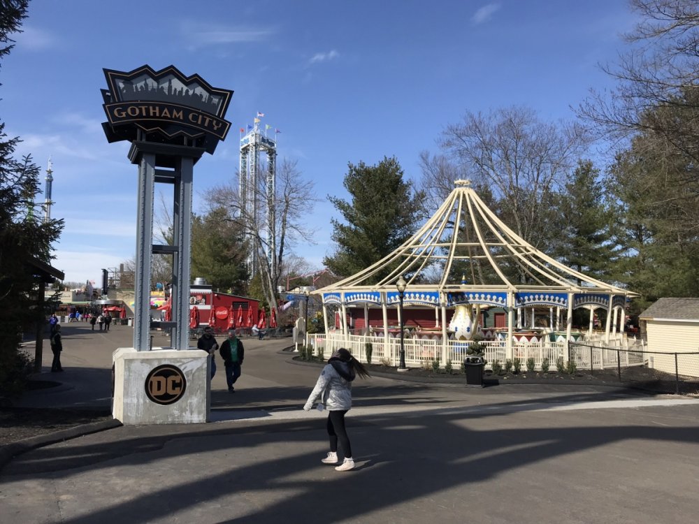 Well we went to our home park today and it was really a glorious day......arrived right after opening at 12:15 pm with the temp in the low 40's but bright sun.....I took the kids without my wife so I was not able to ride any of the big stuff - however I did sneak a ride on Batman while the kids rode Crime Wave.....anyway the cold temps and being a Monday the crowds were non-existent - probably the least amount of people I have seen there except maybe that day last September when rain closed the park early around 3pm......that day I rode Superman in pounding rain which was pretty painful but a good memory.....anyway in 4 hrs and 15 minutes we managed to ride Pandemonium, Thunderbolt, Catwomans Whip, Gotham City Gauntlet, Crime Wave, and Batman (me only).....wait times for all rides were less than 5 minutes.....so great Loved the changes where HQ went up.....they moved the Tea Cups to where Buzz Saw was and put Slingshot right in front of The Riddler Revenge which is a great retheming of Mind Eraser......the ride looks great - the orange/greens are really bright.....IDK if I will ride HQ but the ride looks awesome.......I feel like Slingshot is pretty close to Riddler Revenge...... Goliath was closed and I'm not sure what they are doing to it or putting in.....the covered area that I think is the extended queue area was being worked on......then as we walked around to the south side of the ride I noticed a piece of track on the ground and a gap in the track in the station (zoom up on my picture - you may be able to see it).....not an expert on coasters but maybe they take the train off that way or some sort of repair.....wondering what they are doing to the ride.....honestly I have only rode it once, ever, and I walked off with a major headache.....man it banged my head around.... Anyway a nice half day opener....we will be back many more times all the way through December - we loved Holiday in the Park....enjoy the pics... Closed sign at Goliath - hadn't heard it wasn't working Overflow queue area at Goliath - theres something going on here but not sure Piece of track laying on the ground - zoom up, theres a gap in the track in the station (took train out this way?) Line at Pandemonium was non existent today - unheard of, kids loved it, we rode it like 8 times Shot of The Riddler Revenge from the top of Gotham City Gauntlet - I love the new paint job on this thing Entrance of The Riddler Revenge Walk area in front of The Riddler Revenge - New location of Slingshot is to the right More Riddler Revenge More Riddler Revenge - with train, love the colors, very bright Tea Cups was moved to where Buzz Saw was to make room for Harley Quinn New DC Gotham City entrance sign and Harley Quinn in the background More HQ Close up of HQ Other side of HQ Leaving DC area