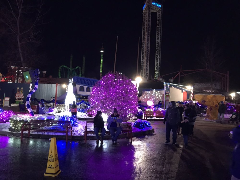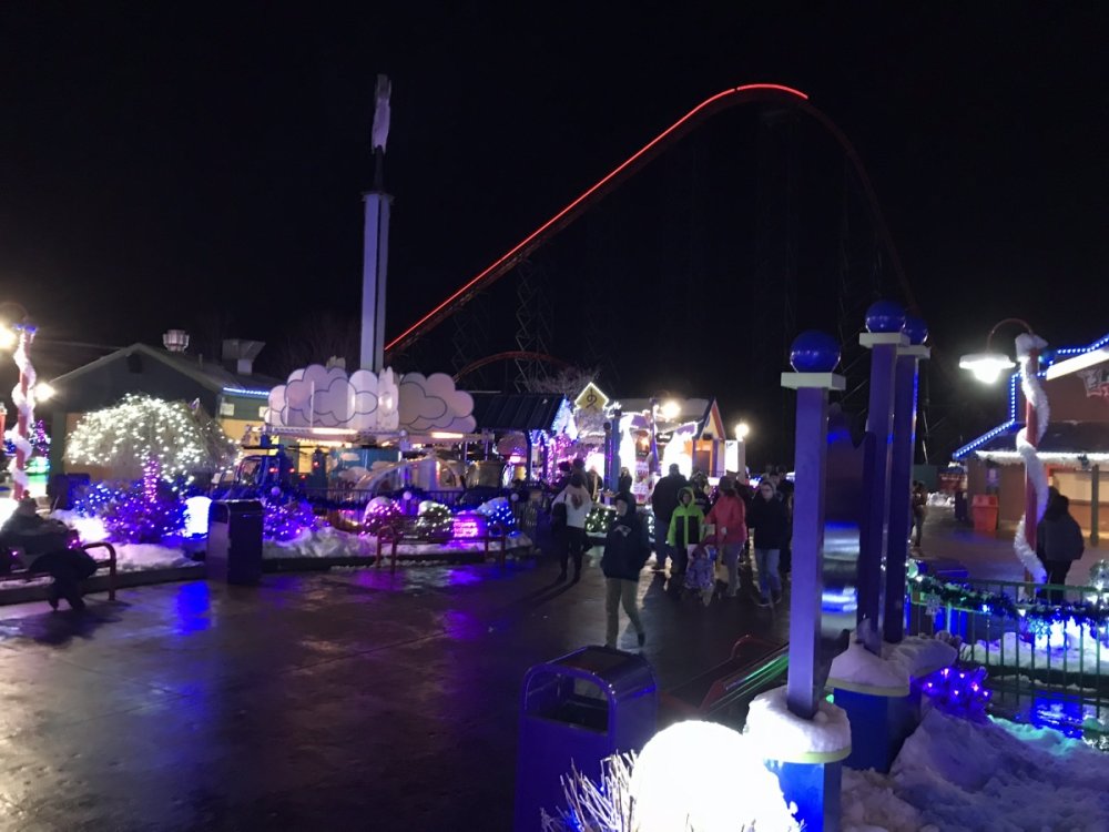 I just saw your post today but we were there last Sunday the 10th and the park looked great with all the snow......I was nice how they cleared it too by actually hauling it away rather than push it to the side.....they left landscaping untouched so the lights buried under the snow really made it look good.....we went back yesterday and they had lost some of it but it still looks good.....probably the only SF doing HITP with actual snow? IDK maybe Great Escape.... Carousel as you enter the park...... Cool ornament with Fireball in the back..... In the kiddie area with Superman lit up in the back..... Another view of cool ornament looking back the other way with Scream and Goliath in the back....