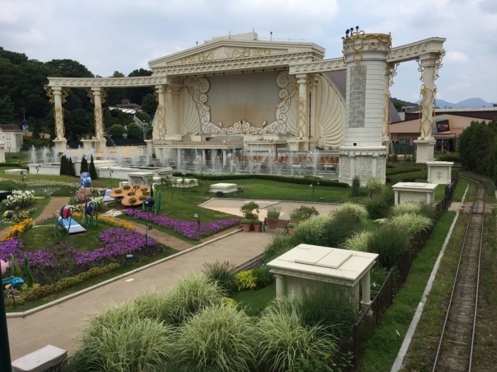 This is the stage where the night light-spectacle is held. I like how the train circles around this area and goes through the middle of the stage.