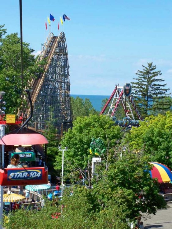 Next up, Waldameer and Darien Lake. Here come the bullet points: Waldameer - It's the anti-Cedar Point, and that's a good thing. - I'm pretty sure the only smoking policy at the park was that everyone should smoke as many cigarettes as possible. - The park was bustling on a Tuesday afternoon. Darien Lake - Reminded me of Six Flags America. That is not a compliment. - I enjoyed the older employees with odd accents. The main ride op for Viper looked and sounded like Blue from Old School. My boy Blue! - I'm pretty sure I was in front of some Canadians in line for the OCC Motocoaster. Every sentence ended with an "eh?" regardless of whether the sentence was interrogative or demonstrative. - Pretty much every ride in the park broke down at some point. Superman... sorry, Ride of Steel and Predator both broke down because they wouldn't release passengers from their clutches back at the station. Less chat, more pictures. Worst. SLC. Ever? The ride op should've just punched me in the sack, hit me over the head with a 2 X 4, and saved me about 15 minutes of my life. Still more to come! If the spot isn't already filled, can I be the corkscrew guy? You know... people can post trip reports and include cliched pictures of corkscrews and say, "Hi Olsor!" Derek, loop. Loop, Derek. Oh, you two already know each other. I see. Or this one. Ahem... no one has EVER taken this picture before. Dramatic Skycoaster! Pretty much every picture of Predator is now an epic fail if it doesn't include boob clutching. I humbly submit my epic fail picture. Was not nearly as bad as I was expecting. It was only the fifth worst coaster I've ever been on. I had it pegged for #1. You sick freaks... As seen on TV. Paul Sr. says, "Ride the friggin' ride already! And buy some OCC merchandise in the gift shop." Here's some lift-hill porn for you sick fetishists. Jerry Garcia is alive, and he loves airtime. And weed. Lots of sweet, sweet cheeba. Steel Dragon (no, not that one) had to be one of my favorite rides of the whole trip. Except for the ball-punching on the block brakes. That was just cruel. Screamer on the left, rag-doll Mennonites on the right. Fun and deceptively tall ride with an abrupt stop. The view of Lake Erie is a nice touch. If this were RCT, your excitement rating would increase by a whole point. Ravine Flyer II. My first ride was OK. My second was meh. But my third ride was awesome. I could've done without the lateral chest-punching, though. -