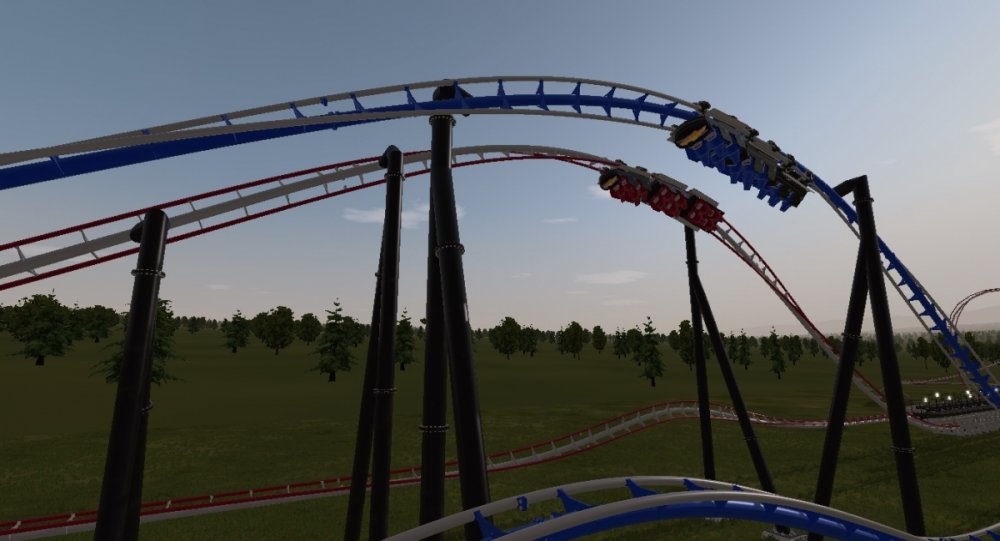 9. Here is a NL-2 Maurer-Sohne idea I've been playing with. It has 2 LSM launch areas and 4 inversions. I like the color scheme, but have been playing around with different colors as well. Still playing with terrain and scenery. Maurer-Sohne idea.