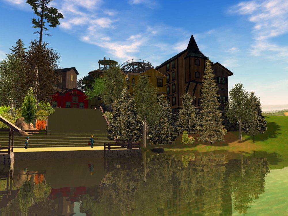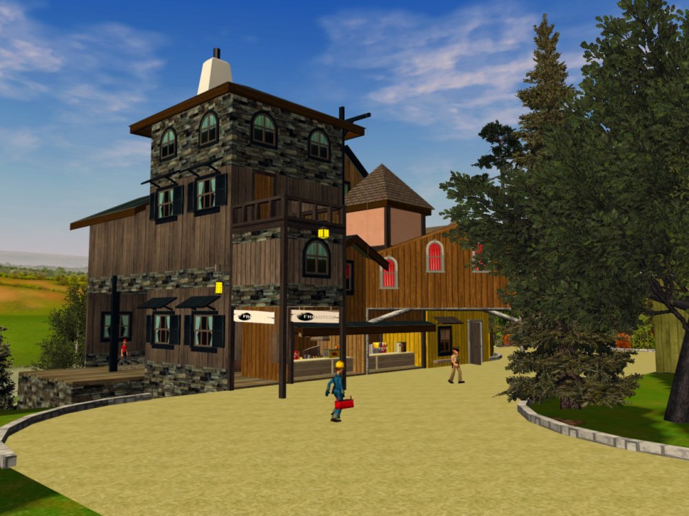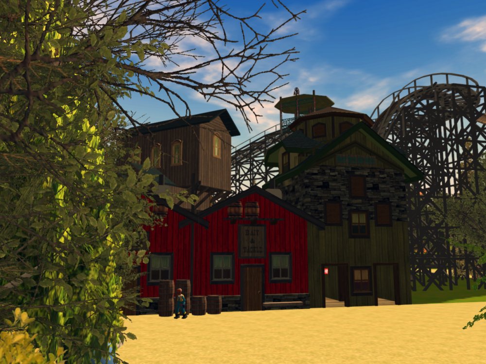 Thanks for the replies. Paradisecoaster - I'm hornored that you still remember me It's weekend and I've had some time to play. The fishing village has grown with a new ride and theming around it. The village's small town square Storage buildings and toilets -