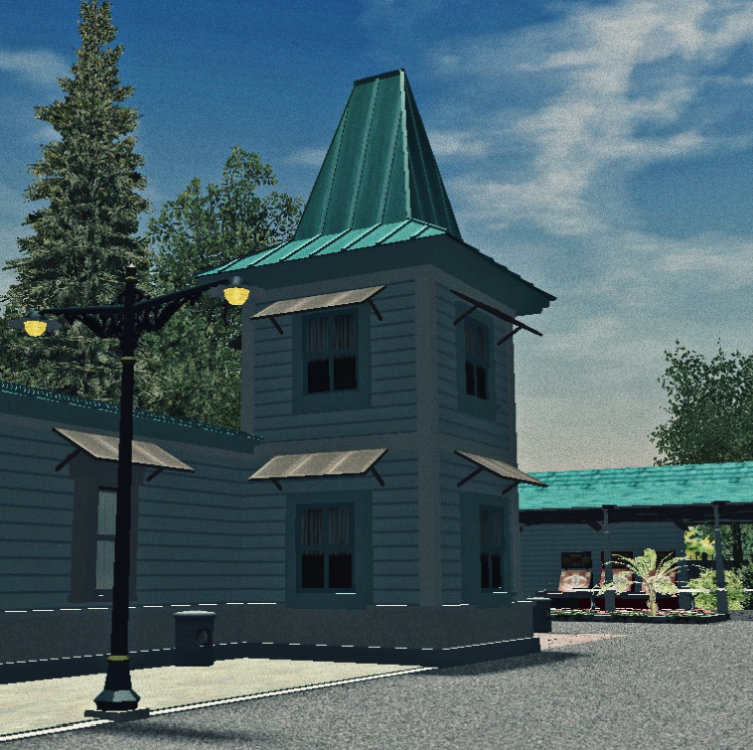 1981 Hello once again! Our team has been working hard to build up this park, and we have some new things that have been built. I went down today with my son to show him around, and there was 2 new buildings. This is the gift shop (We don't have a name yet, suggestions?) It overlooks the Chairswing, and the pond it sits on. I love the way this building looks! This is a shaded building. We didn't know what to fill up here. So we just put some Skeeball machines and some tables. I would imagine this being sort of a gathering area. And you can see that there is restrooms adjecent to it! That's it for now. I think we are renting a helicopter to fly around the area and check out what we have so far. So it won't be long until I get some pictures of that! - Scott Winston