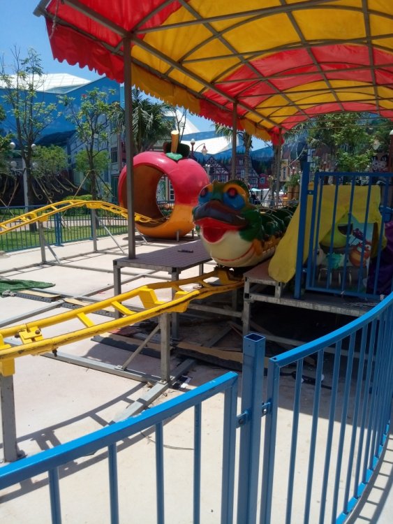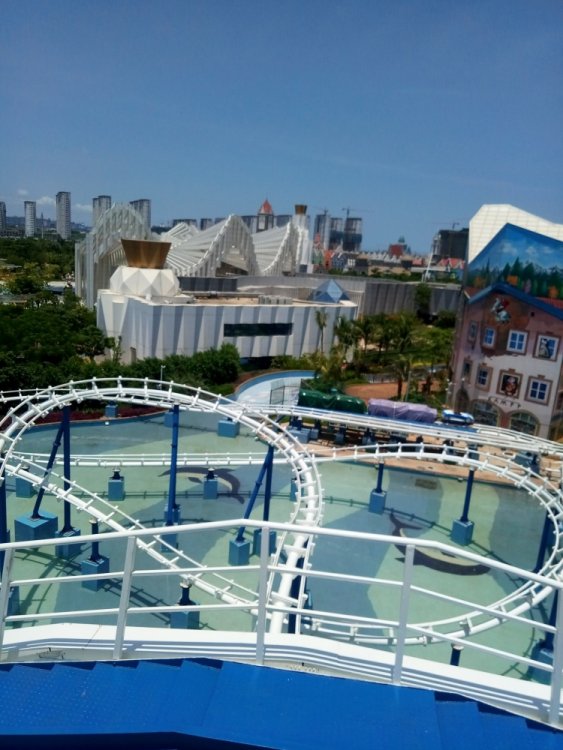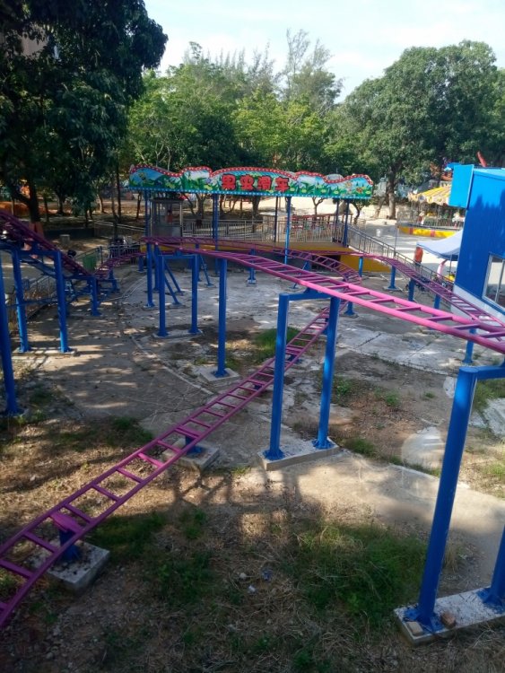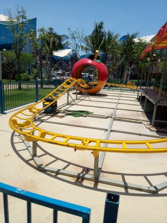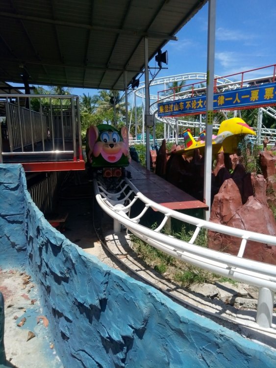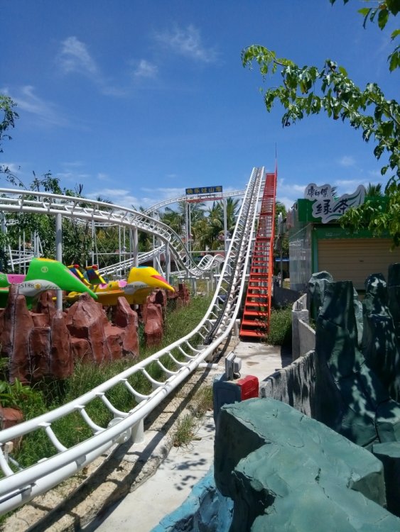 I visited three parks over the last five days. I would have visited four of them, but one park had been closed and the rides removed. Here is a rundown of the parks. Universal 100 Movie Theme Park: This is not owned by Universal, but it is a large park and very nice. It is nicely themed and has a lot of theater based attractions and shows. Rides are scattered throughout the park, including Mine Truck, which is a knockoff of a Vekoma Mine Train. It is an okay ride, but I think the park should have a more thrilling coaster and at least two large coasters. There is a flying theater ride and the film is all in English. It is about a problem with the water supply. I will not give too much away here. White Sand Gate Park: This park is on the opposite side of Haikou and tourist bus 4 begins at one park and terminates at the other. I was here last year, but the big coaster has been replaced with a new family coaster called Family Roller Coaster and a new mouse coaster called Happy Roller Coaster has opened as well. I rode both coasters, took some photos and left. One odd ride I saw here was a Mini Top Spin. Cunjin Park: This place is a city park on the Chinese mainland in Zhanjiang. It has a small corner with rides, including a Fruit Worm Coaster. It replaced a jungle mouse. I rode the coaster, too a few photos and left. This trip was fun, but my first point of interest was in the town of Leizhou at a small place called Children's Playground. The reason for this was I discovered a coaster here (on Google), it was my 500th coaster found before ACE or RCDB. Sadly, the park did not pass inspection and everything there is gone. At least Fruit Worm Coaster at Cunjin brought my total to 501 coasters discovered before ACE or RCDB. I have now ridden 1208 coasters and I have visited 613 different parks. I will check out Changying Wonderland today or Universal 100 Movie Theme Park as RCDB calls it. Here are the tower rides people have been talking about on the internet. A lot of the buildings are like this. That is a large ship. Caterpilla serves as the resident kiddie coaster. No. Adults are not permitted to ride. Mine Truck is the big coaster here. It is a knockoff of a Vekoma Mine Train. I like the cars on this one. It is a bit choppy. It is an okay ride, but I think a park of this size could use at least one more large coaster. A couple of days later, I went to White Sand Gate Park on the other side of Haikou. There is a mini Top Spin here. A couple of new coasters have been added since I last visited. This one is quite fun. It is called Family Roller Coaster. The old powered coaster is still here. Happy Roller Coaster has replaced the old mouse coaster. I like how they are using parts of old rides for decorations on new rides. Here is another view of Happy Roller Coaster. Back on the mainland of China, I went to Cunjin Park in Zhanjiang. Here is the carousel shot for this TR. The Ferris wheel is one of many new rides here. It has not opened yet. Here are the rocket ships. The pirate ship is new. The parks has a little train. This has replaced the park's jungle mouse. Here is an onride shot of Fruit Worm Coaster to close out the TR.