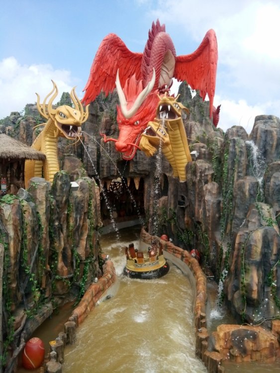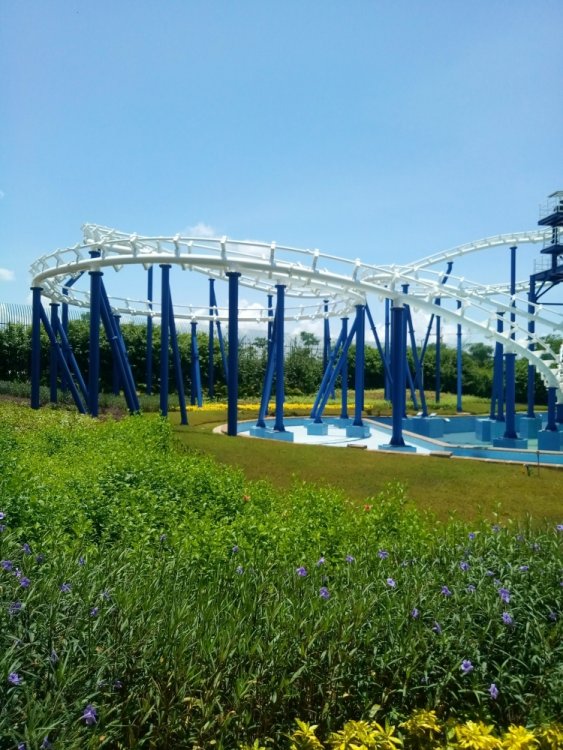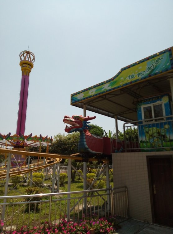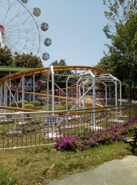 May 6, 2020: Wanzhuyuan (Jieyang, Guangdong, China) There is life after Covid-19. Today I visited Wanzhuyuan in Jieyang city in Guangdong, China. This park has been around for a while and added a bunch of new rides a few years ago. Wanzhuyuan is a very scenic park with a few lakes a lot of trees, water park and an area of amusement rides. Perhaps the most interesting ride here is Jungle Roller Coaster. It is a small family coaster with spinning cars. It is not very thrilling, but it still has some merit. It is located under a canopy and this provides relief from the hot sun. The other two coasters were Sliding Dragon, a standard twin helix powered coaster and Crazy Rat, a standard new generation jungle mouse. Under normal circumstances, my visit to Wanzhuyuan would be just another small park in China, but due to the events of the last few months, the chance to ride a jungle mouse takes on a whole new meaning. The coasters of Wanzhuyuan are just a few of the 541 coasters I have discovered before ACE or RCDB. There is life after Covid-19. This is one of the lakes in the park. This is a restaurant inside the park. Here is one of the top spin rides with newer restraints. I just have to include the carousel shot for this place. Asians love to their giant Ferris wheels. Chinese people love their powered dragon coasters. I never thought I would be so happy to see one of these, but after the last few months... Jungle Roller Coaster is under a canopy and has plants surrounding the track. It is a bit cheesy, but fun. The hotrail on this ride makes the cars spin. It is a gravity powered ride. Yes! It is open! There are coasters after Covid-19. The flume did not appear to be open on this hot day. They have a jungle mouse here called Crazy Rat. This is a newer model. It replaced an older jungle mouse. This will finish off the TR.