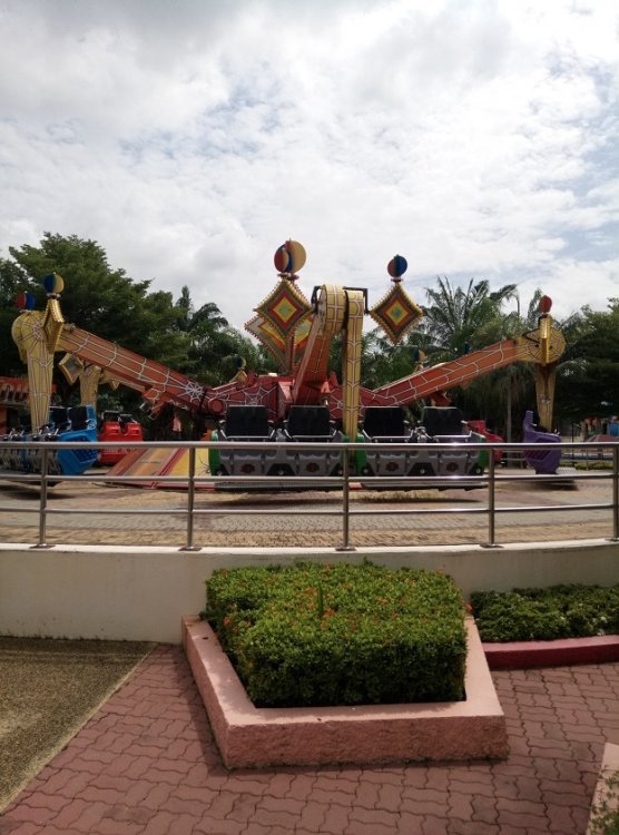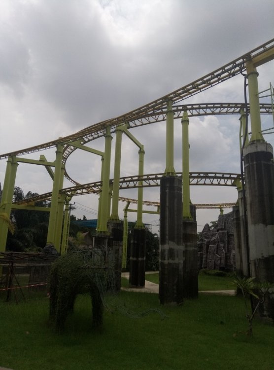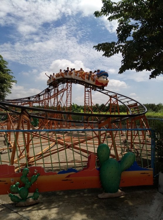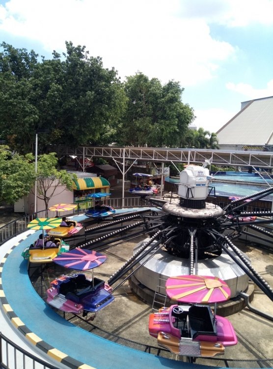 August 31, 2017: Dream World (Thailand) I visited Dream World just outside of Bangkok today. I must say I was pleasantly surprised. The only downside is that I visited during the annual refurbishment of Sky Coaster. Agggghhhh! With that beings said, I got to ride the other two coasters and several other rides and had a wonderful time. The park made me feel like I was in an American park. It is easily one my favorite parks in Asia. It feels like a traditional park that made it into the modern era. There is also a good misx of family and thrill rides here. Black Hole Coaster is an indoor Vekoma ride. Speedy Mouse is a kiddie coaster that packs a punch. both were enjoyable. I also enjoyed a nice rapids ride that I got very wet on. Speedy Mouse became my 1092nd coaster and Black Hole Coaster became my 1093rd coaster. Dream World (park #556) is the best park I visited in Thailand but then all three of the Thai parks were great. I went to Thailand because I am fed up with China's lackluster park operations. It boggles the mind that Chinese parks want to win Golden Ticket awards when they have the crappiest service of all of the parks on the planet. It appears a plane ride is necessary for to enjoy a roller coaster. China parks shot lockers are empty and their powder is spent. They can't fire a shot for they're choked at the vent (Cruisin' Round Yarmouth-Irish Rovers version inspired comparison). I have arrived at Dream World. It is just outside of Bangkok. I am from Ohio. I had no clue that Ohio was this close to Thailand. There is a nice lake here. This boat is no longer in service. It would be nice if they restored it. The waterfall is nice to look at here. This was my first ride here. It is called Speedy Mouse. This was during my first ride on Speedy Mouse. There is a decent number of family rides here. The rapids ride gets riders very wet. I had fun on it. This is a popular ride here. This is my favorite here. It is all indoors, so I couldn't get a decent photo. It was made by Vekoma. Sky Coaster is a Vekoma suspended coaster. It is too bad it is currently closed for refurbishment, but I did see people painting it. It is a good sign this ride will last a bit longer unlike some suspended coasters. I hope I get to ride it on my next visit. You can get a good view of Sky Coaster from the bumper boats. This will finish the TR.