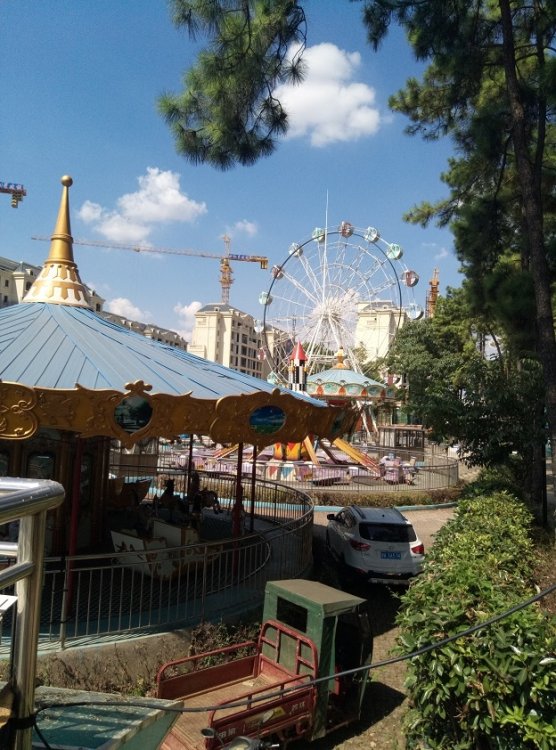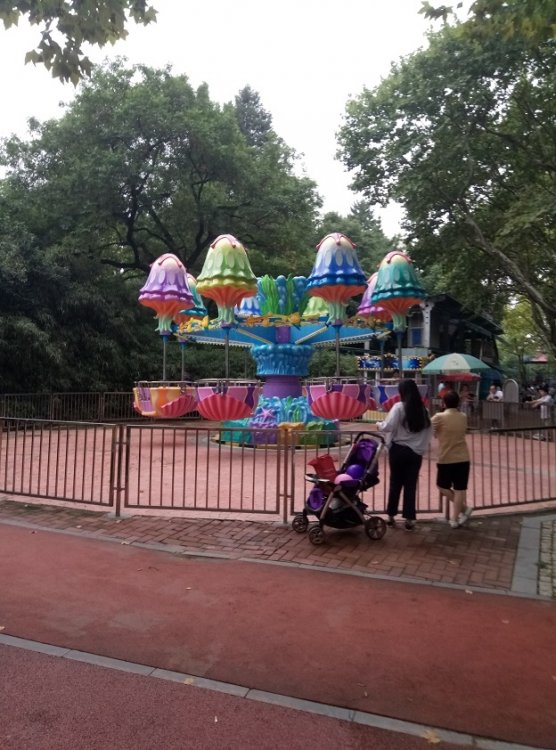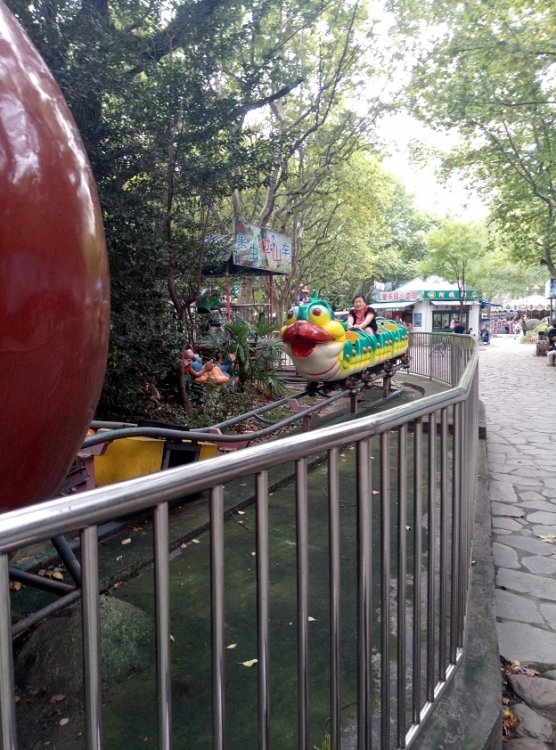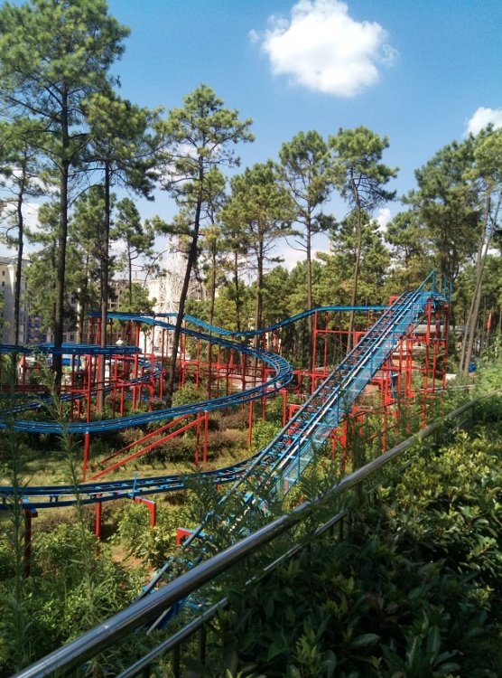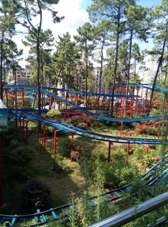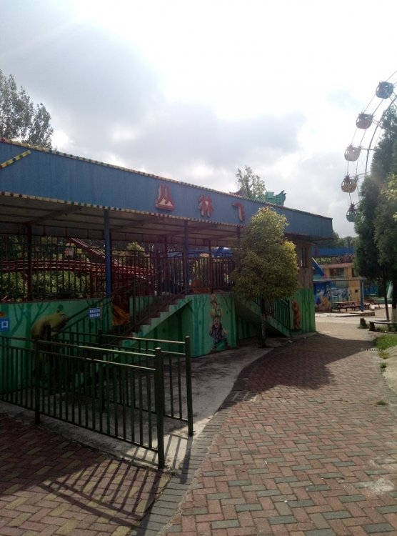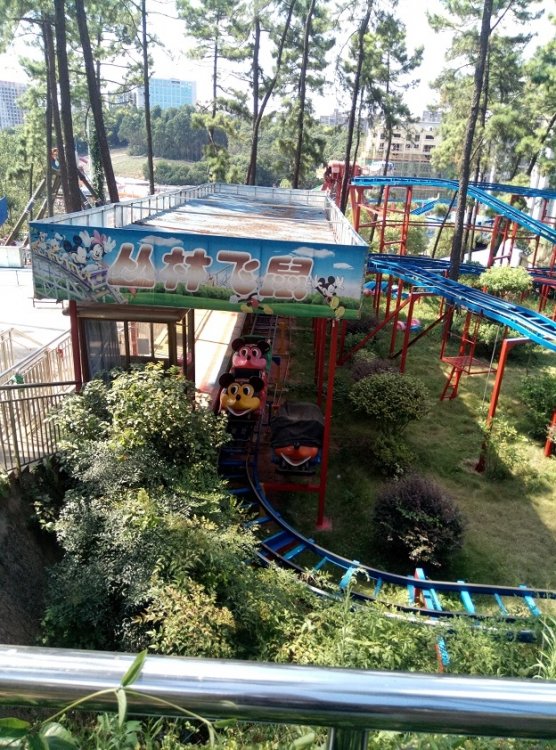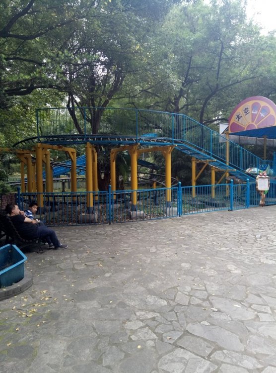 Hunan Provincial Forest And Botanical Garden (July 25, 2017) I went to the Hunan Provincial Forest And Botanical Garden today. This park is just south of the city center in Changsha in Hunan province. This park is build on a hill. I told the taxi driver to take me to the north entrance as the rides are a five minute walk from there. He took me to the west entrance instead and I had to walk over a hill carrying my luggage all the way. Along the way, I took a wrong turn and walked about 30 minutes out of my way thanks to the maps in the park not always being very clear. Many of the maps only show a small section of the park and not the whole layout of the park. I finally reached the rides area. There is a jungle mouse here (#1084) and a bumper car ride with some obstacles on the floor that drivers have to drive around. This could have been interesting if there were other people there to ride. The rest of the rides are basic rides that are found in every Chinese park. If you visit this place, be sure to tell the taxi driver you want off at the north exit so that you do not walk for an hour to find the rides. I have arrived at the west entrance of the Hunan Provincial Forest And Botanical Garden. The taxi driver took me to this entrance instead of the north entrance like I wanted. After a very long walk, I finally arrived at the rides. This unusual bumper car ride is the first ride I saw. Several rides can be seen here. This is basic Chinese fare. The flume is actually in the water park next to the rides. Yes! They have a coaster here. It is another Chinese jungle mouse. This become my 1084th coaster. This will finish the TR.