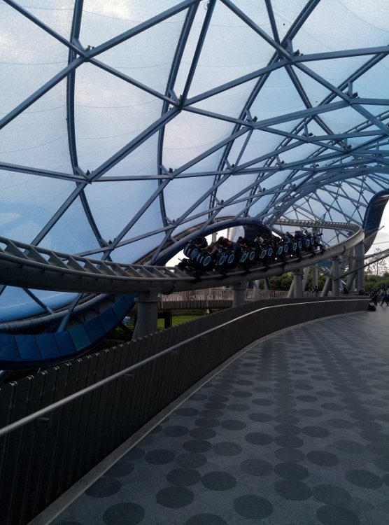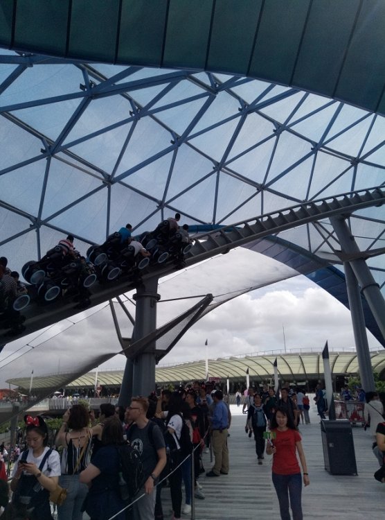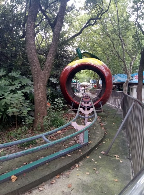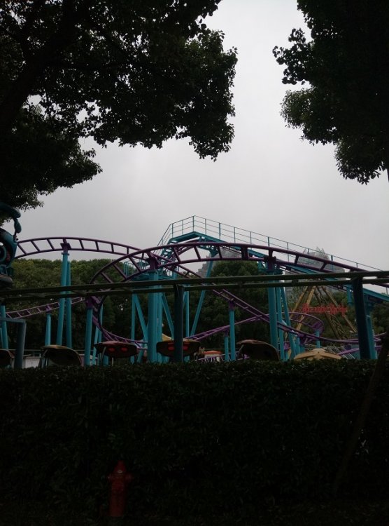 October 2, 2017: Shanghai Disneyland and Heping Park I got up very early this morning (5:00 am) and started making my way to Shanghai Disneyland (park #557 for me to visit). This is the National Day holiday that lasts for one week here in China. The park would get 60000 or so visitors today. I arrived at Shanghai Disneyland at 7:25am and there must have been a mile long line just for the bag check. Once past the security check, I found there were no lines to purchase a ticket at the park, but that there was an hour wait to pick up tickets if guests purchased them in advance. I am glad I bought my ticket at the park. After entering the park, I went to Tron Lightcycle Power Run first. I waited 30 minutes and I liked the train design and the launch on this coaster. It is much cooler than using a wild mouse as a space themed coaster in a building. It became coaster #1097 for me to ride. After Tron, I immediately headed for the Seven Dwarfs Mine Train (#1098)).What did I think of this ride? I like mine trains and I like suspended coasters. I thought the rocking of the cars would make this ride a combination of the two. I was wrong. The cars hardly rocked at all and the ride was way too short. It is my least favorite mine train by a western company. Any of the Arrow mine rides easily beat this one. The same goes for Big Thunder Mountain in Tokyo and Big Grizzly Mountain in Hong Kong. I really liked both of those too. In short, Shanghai Disneyland is a very nice park and is very big. I do hope they will see fit to add another big coaster in a few years and some more rides to increase capacity. On the way back to the hotel, I stopped at Heping Park. A new family coaster has been added. It became coaster #1099 for me to ride. The old Space Car coaster I rode here in 2011 is still here, but it did not appear to be open. I finished today having raised my park count to 557 parks and my track record to 1099 coasters(103 wood/996 steel). I have two milestone coasters coming soon. One will be coaster #1100 and the other will be my 1000th steel coaster. I will start my day off with my first visit to Shanghai Disneyland. This will be park #557 for me to visit. They did a nice job with the castle here. The carousel is the first ride to greet visitors. Guests can enjoy canoe rides here. Tron would be my first ride of the day. This is just after the launch. This is a fun ride. I love the train design. Shanghai Disneyland is working on an expansion... The Seven Dwarfs Mine Train is a nice family ride. After Disneyland, I went back to my hotel, but not before popping into Heping Park for a quick visit. A nice lake with boats is here. The Space Car coaster I rode in 2011 is still here. I just have to get in a wave swinger shot. There is a nice little train ride at Heping Park. This was not here in 2011. There are two of these apples that the train passes through during the ride. It is a nice little ride for the family. This will finish the TR.