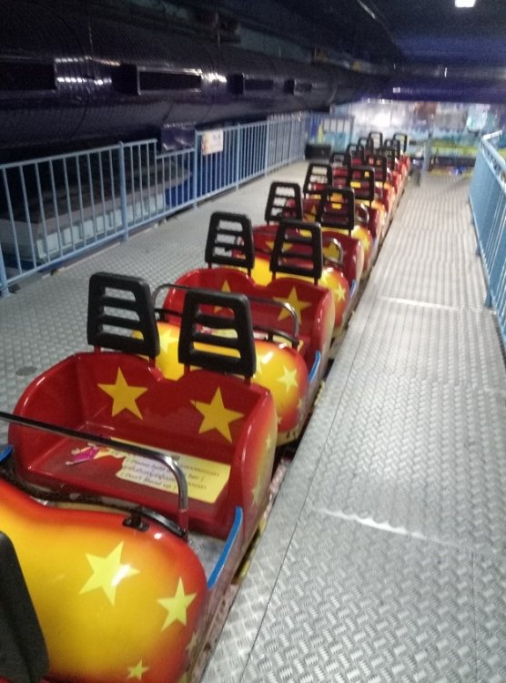 August 29, 2017: Yoyo Land (Bangkok, Thailand): I am in Bangkok, Thailand for a few days. I made my way out to the Seacon Square shopping mall this afternoon to visit Yoyo Land. This park actually was a surprise for me. I was expecting a bunch of games and a roller coasters, but I actually found a nearly full scale park on one floor of a shopping center. There is a roller coaster called Roller Coaster (#1089 for me to ride), a log flume for families, long train ride, 4-D ride, bumper boats and several others. Roller Coaster only had one real drop and was not all that exciting, but I got a pay one price deal for $5.41 USD and rode the coaster 26 times and also rode a few other rides. A single ride on the coaster is $1.50 USD. Yoyo Land became park #554 for me to visit and my first park in Thailand. It was a great way to spend a rainy afternoon. I have arrived at the Seacon Square Mall and there is an amusement park here. This train goes through the whole park and takes a decent amount of time to go through the whole ride. A 4-D attraction is here. Riders can choose among 4 different films. I went on this three times. It is actually a fun ride. Yes!!!!!!!!!!! What? It is not a mouse or a spinning coaster or a powered coaster? The elevation doesn't change much on this ride. The track slightly rises and falls in most places. It does have a few turns. This is the only real drop on the coaster. This will finish the TR.