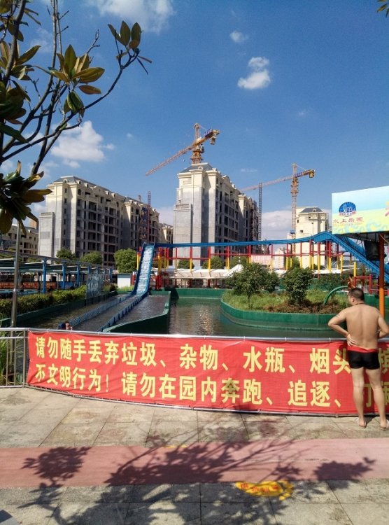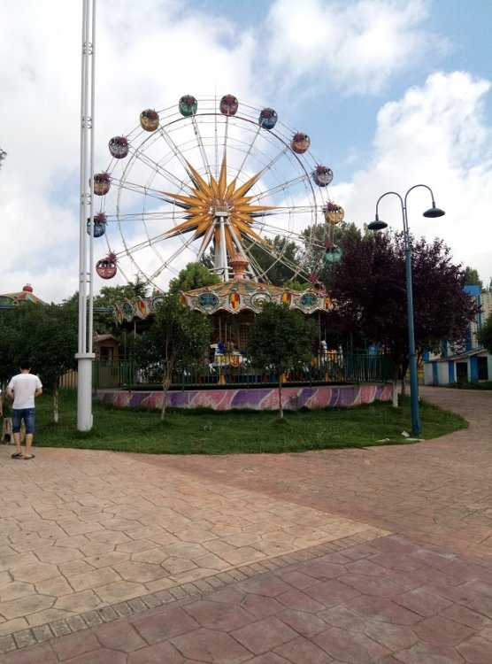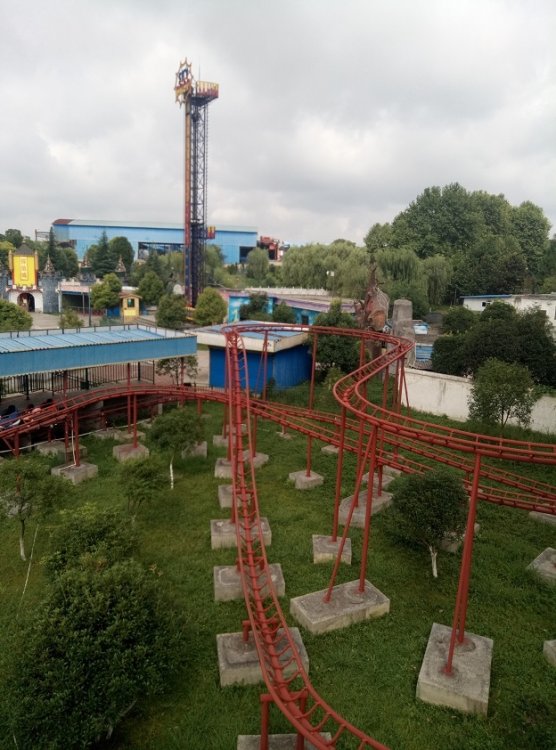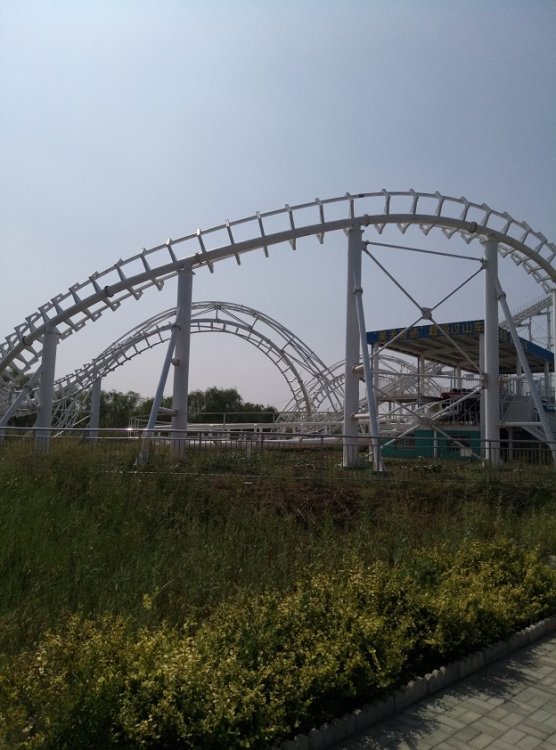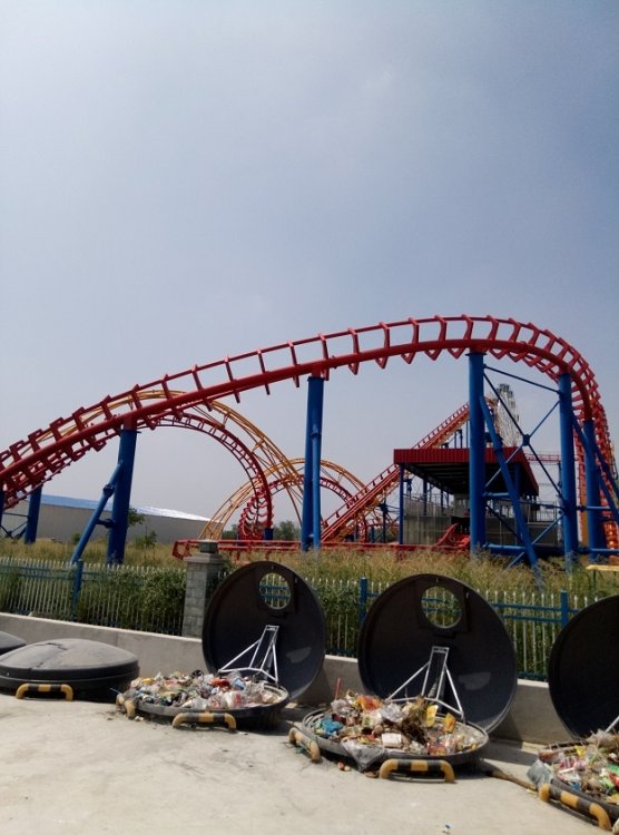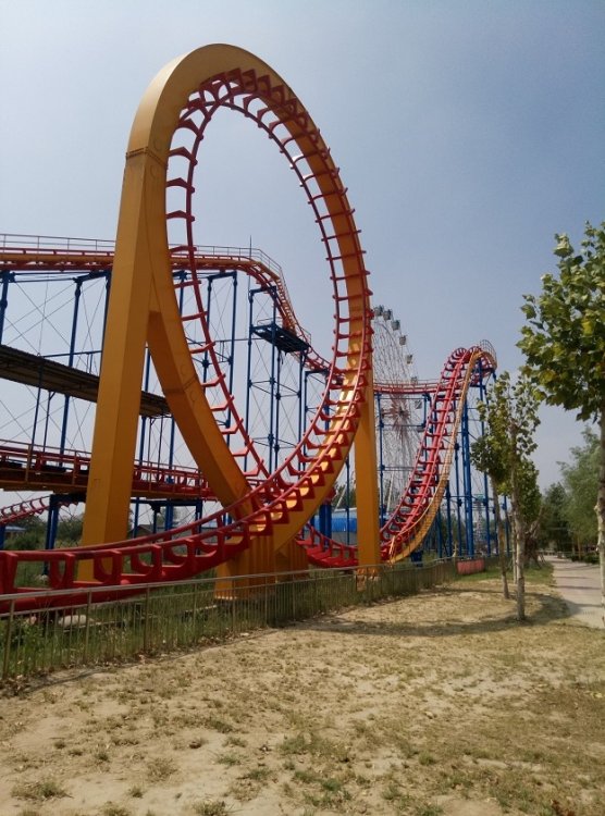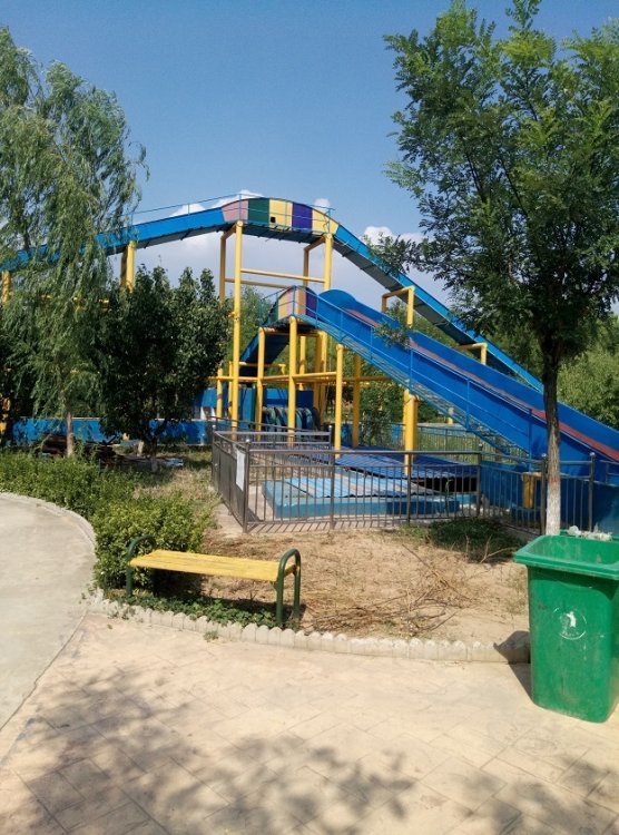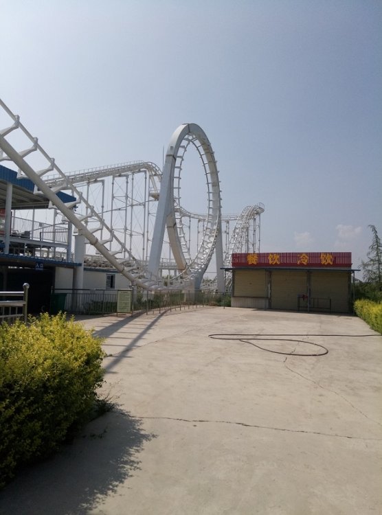 July 22, 2017: Tin Yat Park and Meitian Amusement Park (Yuncheng, Shanxi, China): Tin Yat Park: This park opened in 2013 and still looks very new. I was one of only a few people here. The rides area seemed totally empty until I found some workers who would run the coasters. There is a loopscrew called Roller Coaster and a mite mouse coaster here. I rode the mite mouse (#1080). After this, I was told that I may be too tall for the loopscrew. I asked them to check and see if I would fit into the car. They let me try. It was a perfect fit, the OTSR came down and I was comfortable and secure, but they didn't want to risk letting me ride. This resulted in me walking away disappointed. My advice to Chinese parks-use some goddamned common sense. Allowing adults to ride a family sized coaster and then turning them away from the big coasters is about as backwards as it gets. To Chinese ride manufacturers-do not go to western countries and try to sell your shit there. Westerners expect to ride things when they go to parks. Westerners aren't like the Chinese and will not settle for just getting their picture taken in front of the ride. If your rides can't accommodate westerners, you will never get far. A six year old child would do better than this. Meitian Amusement Park: This park is a gated amusement park and admission has to be paid to enter. it rundown too. The rides are rusty. Weeds are growing everywhere. There is a loopscrew (#1081) here. It is the same damned design as the one at Tin Yat, except that the OTSR is much smaller and it is not very comfortable when it is pulled down. With that being said, Meitian amusement park operated this thing right and let me ride. Meitian may be a shithole, but at least they got it right-ya hear me Lewa and Tin Yat? The most unusual ride at Meitian is a double top spin. I have a photo of it in the TR. I have arrived at a park that is less than 5 years old. It is Tin Yat Park. This is the view after visitors enter the park. Here is a view of the lake while I was walking to the rides. It is the hottest summer on record here and the damned flume isn't open. They have a loop screw here. The idiots would not let me ride it despite meeting the height requirement and fitting into the seat and being able to lock the restraint. The did allow me to ride this thing. It is a mite mouse. I like these. A taxi took me on a 20 minute ride to this place. It is Meitian Amusement Park. This will tell me where I need to go. This certainly puts a new spin on things. Here is Meitian's carousel. They have a large Ferris Wheel like most parks here do. The flume here also is not in service. Meitian has a loop screw just like the one I was denied riding at Tin Yat. I would get to ride this one twice. This will finish the TR.