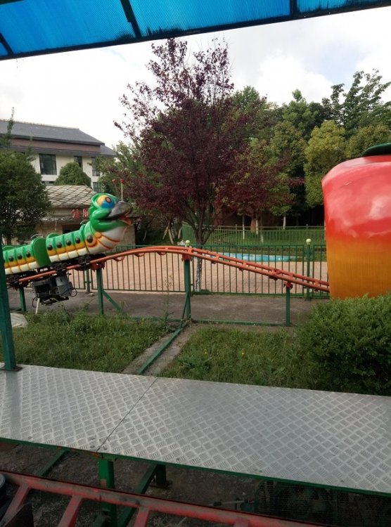August 21, 2017: Ruofei Park in Anshun, Guizhou, China I went to Ruofei Park in Guizhou today. It is in the norther part of the city of Anshun. I was told the park had been renovated some time back, which may explain the loop screw on the park map (which the park does not have-at least not now). The park map seemed to indicate some changes in the layout of the park have been made. The rides here are basic Chinese fare. There is a mouse coaster with a style of track that is a bit different from the other mouse coasters I have ridden here. It follows the same layout as other mouse coasters, but the track style is different and this one is much smoother. It became coaster #1087 for me to ride. There is also a fruit worm coaster (#1088) here. I rode it on the way out of the park. The two coasters were the only rides I would go on as the rides are basic rides found in most Chinese parks. Anshun is a small city and this may be the only amusement park here. I did see the aquarium and it was pretty basic, but it did include some big sea turtles, a couple of sharks, a python and two crocodiles along with some fish. If you are ever in this part of China, Ruofei park makes a nice little stopping point and the two coasters here bring my total to 1088 coasters ridden and 383 coasters that I have discovered before ACE or RCDB. Ruofei Park became park #552 for me to visit. I am at Ruofei Park today. Let's see what is inside. It appears, from the park map, that the park has a loop screw. These are among the first rides to greet visitors. it isn't a park in China without a wave swinger. A haunted walk through attraction is here. A loop screw is not here, but a mouse coaster is. It follows the footprint of many mouse coasters, but has a different style of track. It is a very smooth ride. I took this shot heading up the lift. I would finish my visit on this. It became coaster #1088 for me to ride. This will finish the TR.