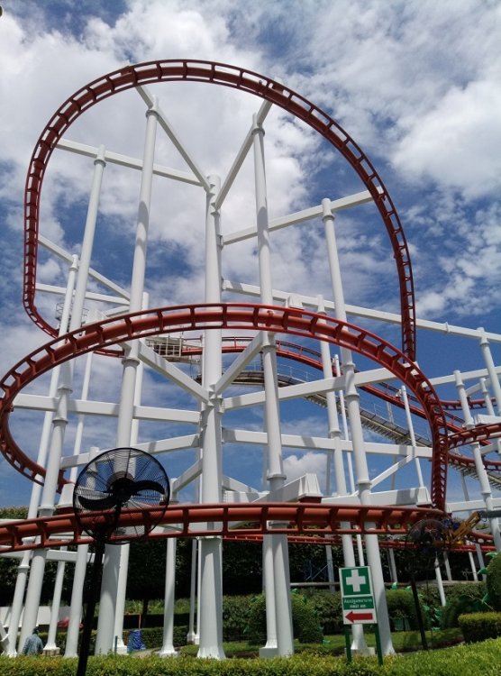 August 30, 2017: Siam Park City (Bangkok, Thailand) Today I went to Siam Park city. This park is nearly 37 years old and is showing its age a bit, but I still had a great time. The one thing I thought of the whole time was that this park made me think of the Great America parks. While I have not been to Great America in California, I have visited the park in Chicago. My reasons for saying this are as follows: 1. The double decker carousel just inside the entrance (all three parks) 2. The three major types of Boomerangs have been found in all parks at one time or another-Siam has a boomerang, SFGA had a GIB and Great America in California had an invertigo. All three parks combined have made the Boomerang family a part of their lineup. 3. Vekoma SLCS-The two Great America Boomerang type coasters were SLCs and Siam has an extended SLCs. 4. The use of the name Vortex at Siam and California's Great America. 5. The Condor ride-I am not sure if SFGA still has one (they did at one time), but Siam has one. 6. Loop The Loop at Siam Park is SBNO and has a layout similar to the the Great America Tidal Wave coasters which also are defunct. 7. There are sky towers in each park. Comparisons out of the way, Siam Park is fun if you like coasters and I had a great time there. Two sour notes would have been that the Grand Canyon coaster was closed today and a major lack of family rides. I think family rides are needed to round out a park. I am not sure what is up with Loop The Loop, but the ride looks to be in good condition. I mean it doesn't appear to be rusting to pieces and looks just as good as the coasters that currently operate in the park. The trains are done for on it. Boomerang and Vortex brought my coaster count to 1091 coasters and Siam Park City became park #555 for me to visit. Today I will visit Siam Park City. What?????? Did I just step into one of the Great America parks? Boomerang is just inside to the right of the entrance. It would be my first ride today. Boomerangs with this type of train are no fun at all. Loop The Loop looks like it would be fun. I will never know. It hasn't carried passengers in more than 10 years. Here is some scenery in the park. I will try Grand Canyon next. It is a large powered coaster. This is probably a fun ride...but... It was closed today. The flume here is fun and has reverser turntables. I have only been on two of these, but I like them. This is one of my favorite rides ever. The haunted house was nicely themed. Hmmmm.....Am I at a Cedar Fair park? Vortex is an SLC. These aren't so bad after riding the Chinese knockoffs. Seriously, after so many Chinese knockoffs, I loved every headbanging second of this ride.... Here is an action shot to prove the ride is still in service. Here is one more action shot and this will finish the TR.