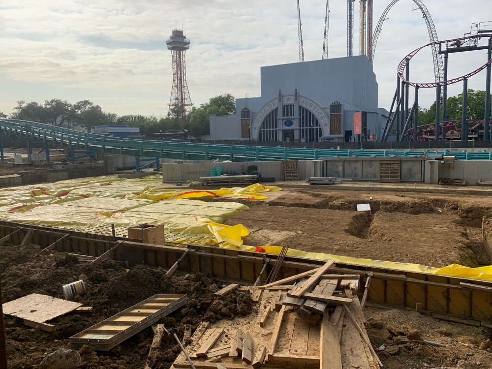 These photos are from last year. They were in the parking lot and it looks like the old track designed for single car ops? January-March of this year I saw them installing a metric butt-load of wiring for the electronics of the ride. You can see the crew working on the ride when the park is open on weekdays. April-May of this year they have gotten LOTS done. But are they close? No they are not, are they closer than January? Eons. The main progress I've seen is the concrete. It will get there. This project has gone through a global pandemic not to mention 3 company CEOs and 3 Park Presidents when SFOT appoints a new one.