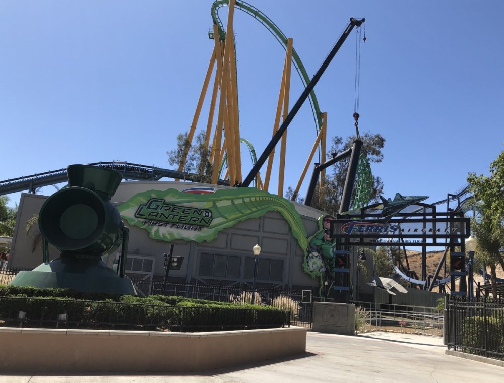 The Grunt Lantern (Green Lantern) is finally gone. I took this picture before they removed all the steel support structure. Good luck to the Canadians with this one. I only rode it twice and that was two times too many!!! Also the spaghetti bowl is complete now for West Coast Racers. Looks mesmerizing... Good bye Grunt Lantern Spaghetti bowl