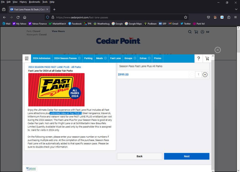 ^ I'll be there in a few weeks. I'm a little concerned that I've read it's rough in the last row. That's normally my go to row for most coasters. Did you experience that? Also this "locker thing" seems to be a mess. It seems like Steel Vengeance all over again from year one. What are your thoughts on this? I too have low expectations. -