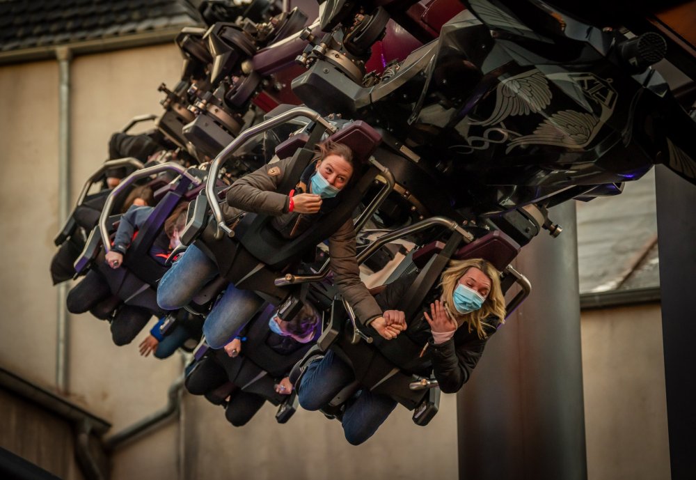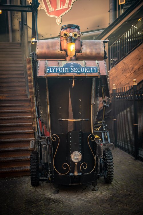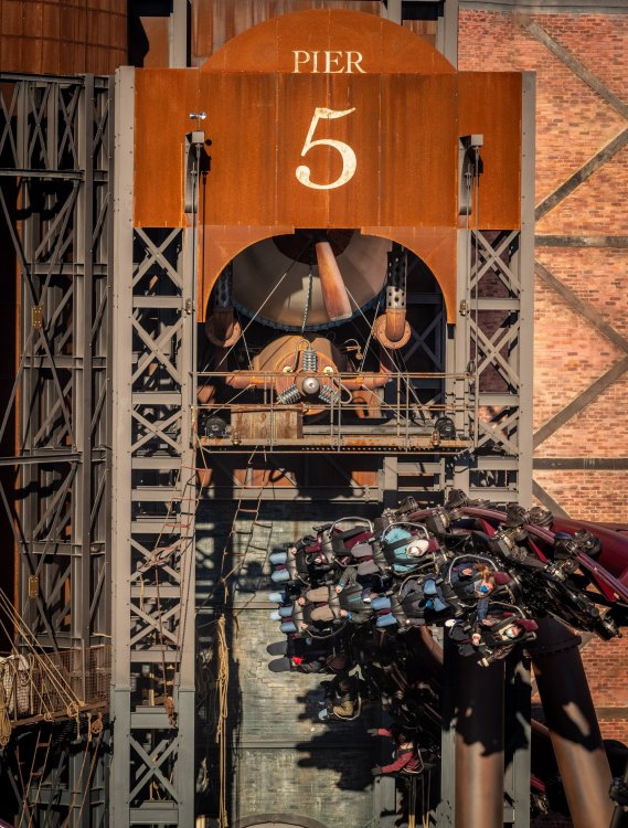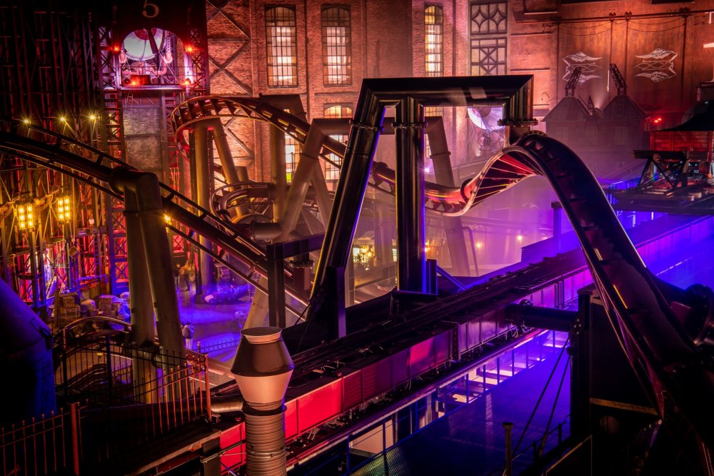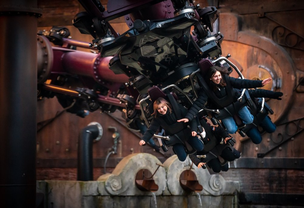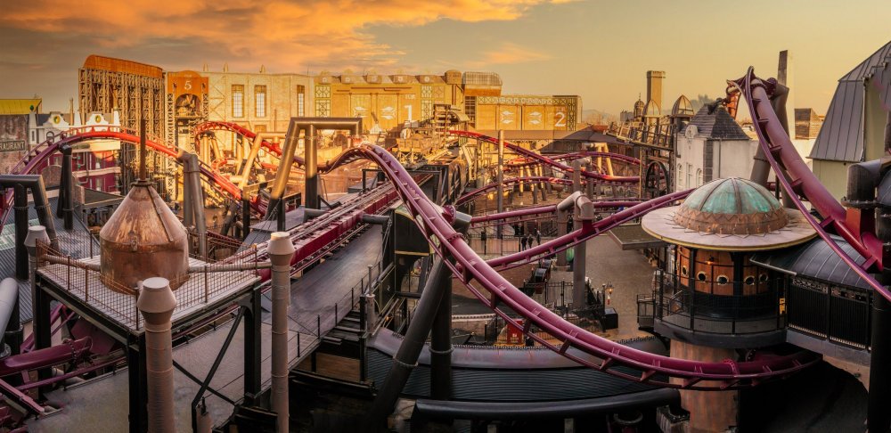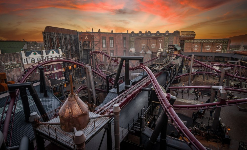 As some regular Theme Park Review readers might know, I live in Bonn, which is not only the former capital of Germany, but also very close to Phantasialand. The park has a solid reputation for building excellently themed roller coasters like the “Colorado Adventure” Vekoma mine train, the B&M inverter “Black Mamba” and most recently the Intamin multi launch coaster “Taron”, embedded in the genuine world of “Klugheim” that opened in 2016. Phantasialand is a family owned park, so it came quite as a surprise that they announced another world class rollercoaster to open in 2020: F.L.Y., located in the new themed area “Rookburgh” – a steam punk type of land. This flying coaster, build by Dutch manufacturer “Vekoma” features 0.75 miles of track, two LSM launches, a “dark ride” part, two inversions and the most innovative loading system I have ever seen on the flying coaster: to enable riders to board, the track is mounted against the station wall and the seats are rotated 90°. To put passengers into the “flying” position, the seats rotate back seamlessly after the ride has passed the short “dark ride” section. The whole setting of the attraction is amazing: steam emerges from the underground, there are tons of details and the sound design creates a perfect immersion. But it is at night, when “Rookburgh” really shines. A visit during the “Wintertraum” event is greatly recommended, as the park stays open late and there are little to no wait times – even at top attractions like F.L.Y., Taron and Black Mamba. The steam effects and the low winter sun make for some cool "god rays" The coaster interacts with the elaborate themeing. I really love that shot. Speaking of themeing … They use metal detectors and a clever locker system, so F.L.Y. flies literally over the guests heads. Tracks and trains and winter sun and blimps and Vekoma goodness This inversion makes the cars look like a petal. Pier 5 Just one of many "airtime" moments. And yes: that's ice on the top of the backbone. 30°F. A panoramic view of F.L.Y. and the whole "Rookburgh" area. Pretty, uh? To the left you can see the first straight LSM launch segment. For the real enthusiast, there is a capsule style hotel embedded into "Rookburgh": "Charles Lindbergh" gives guests some exclusive views of "F.L.Y." (as the trains literally travel around your rooms) and front of line access. I did mention the excellent themeing, didn't I? It's all about flight. They might not completely follow german mask policies, but at least those girls seem to have fun. They do way better (as most of the guest do) One of the infamous steam effects. This gauges turn red before those effects go off. Did I mention the themeing? I'm pretty sure, I did. And there is lot of it. When the sun sets the whole area becomes even more "magical". After sunset. That's some impressive view, isn't it? They even do a short "light show" when the lighting turns from "day mode" to "night mode". Another panoramic view of "Rookburgh". Track and lights and steam. This is the second launch stretch. It catapults you upward.