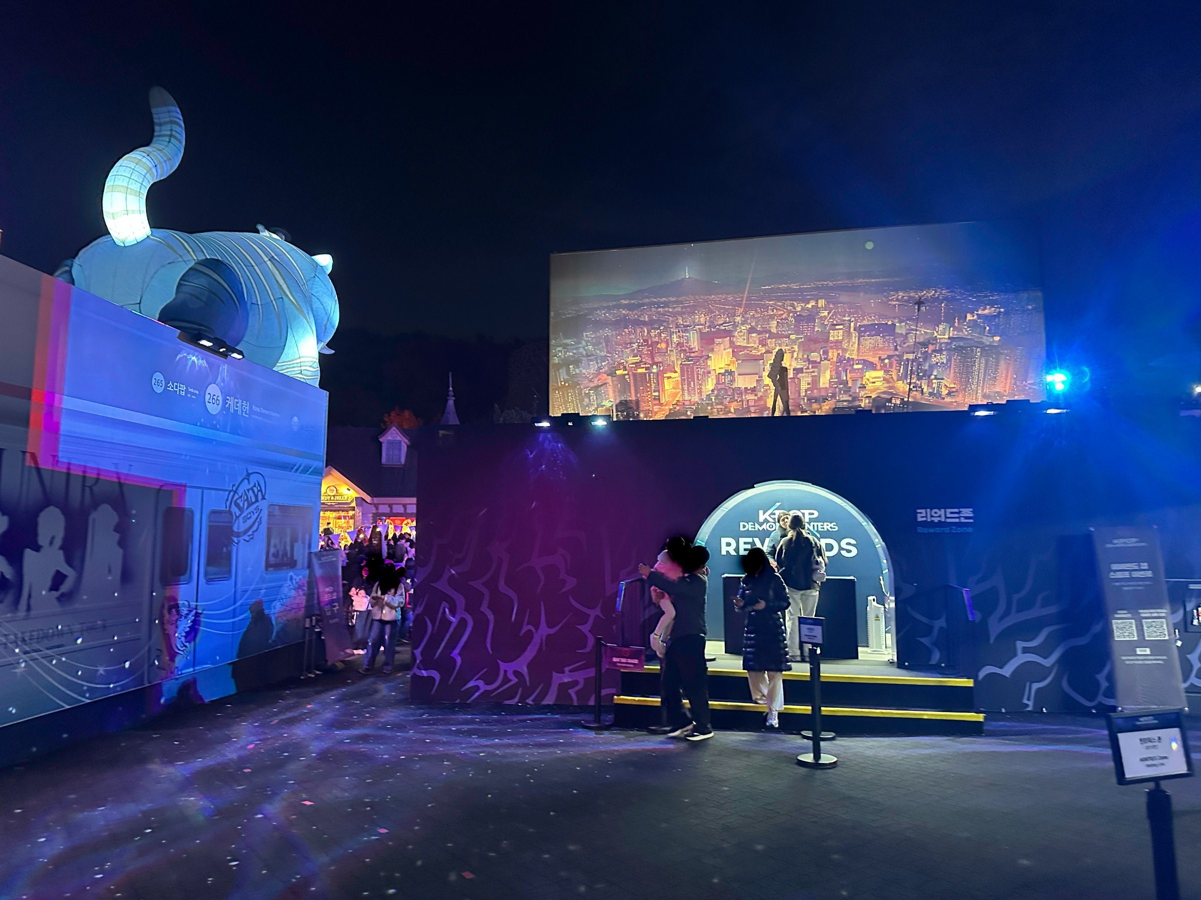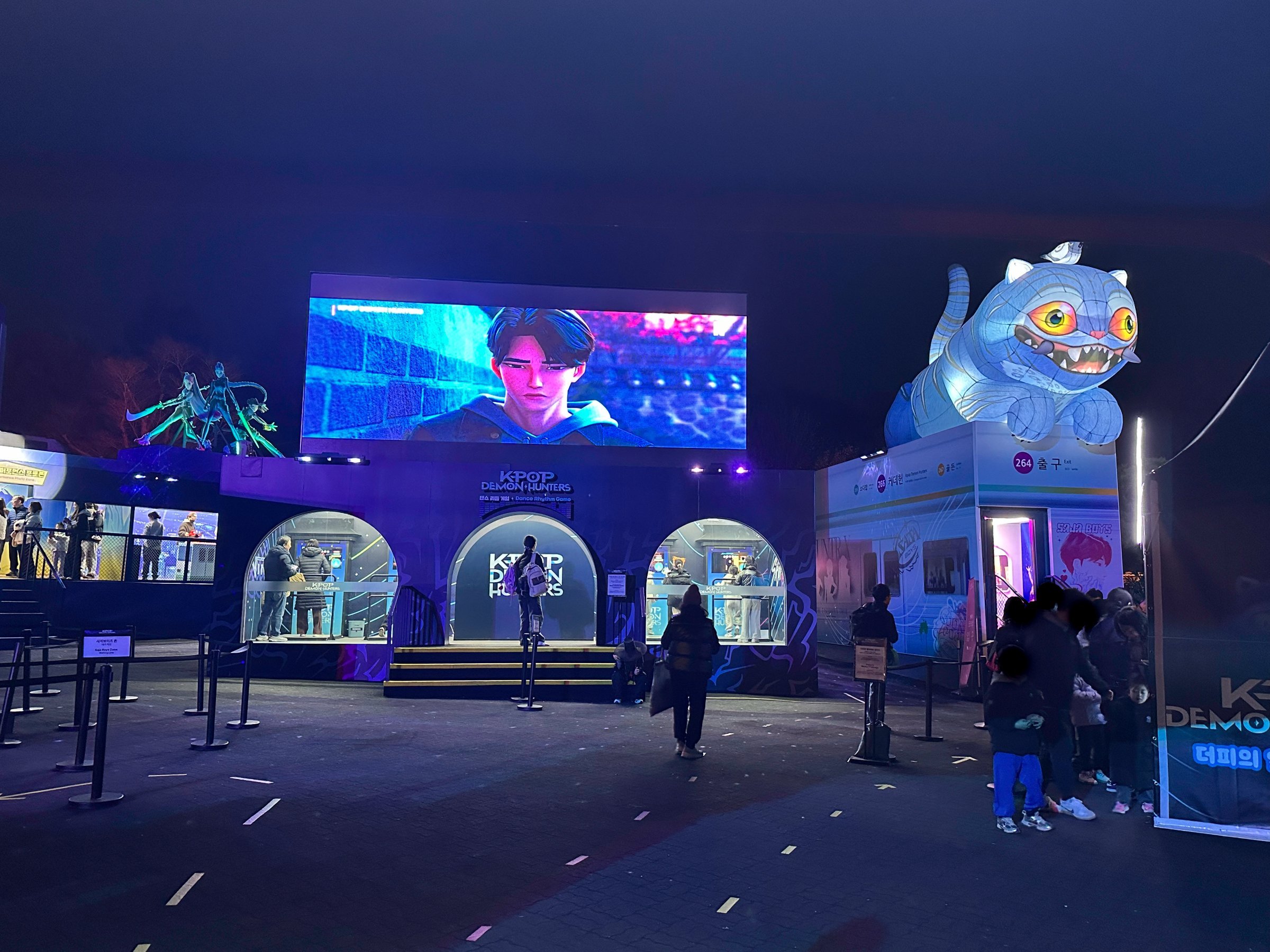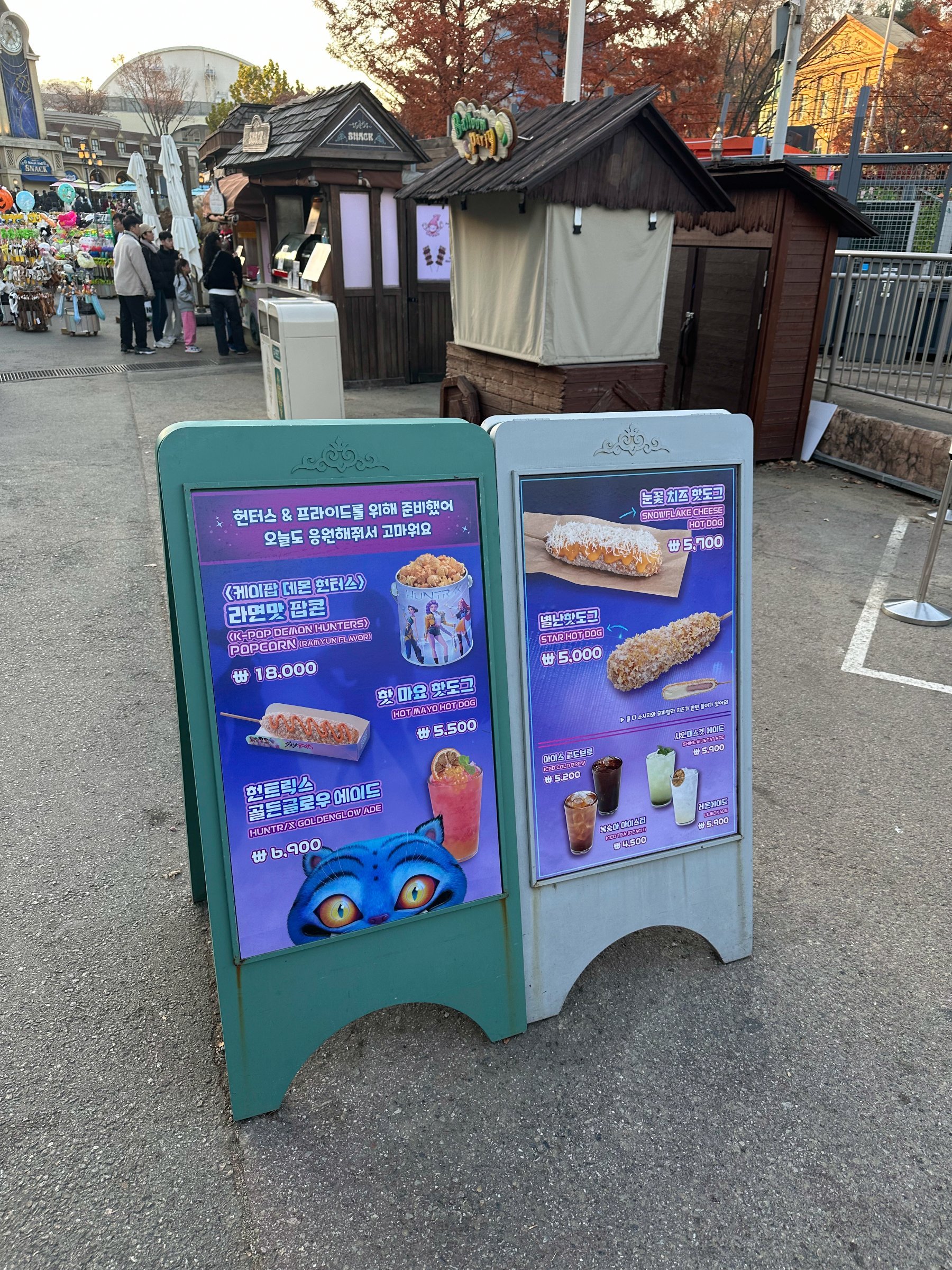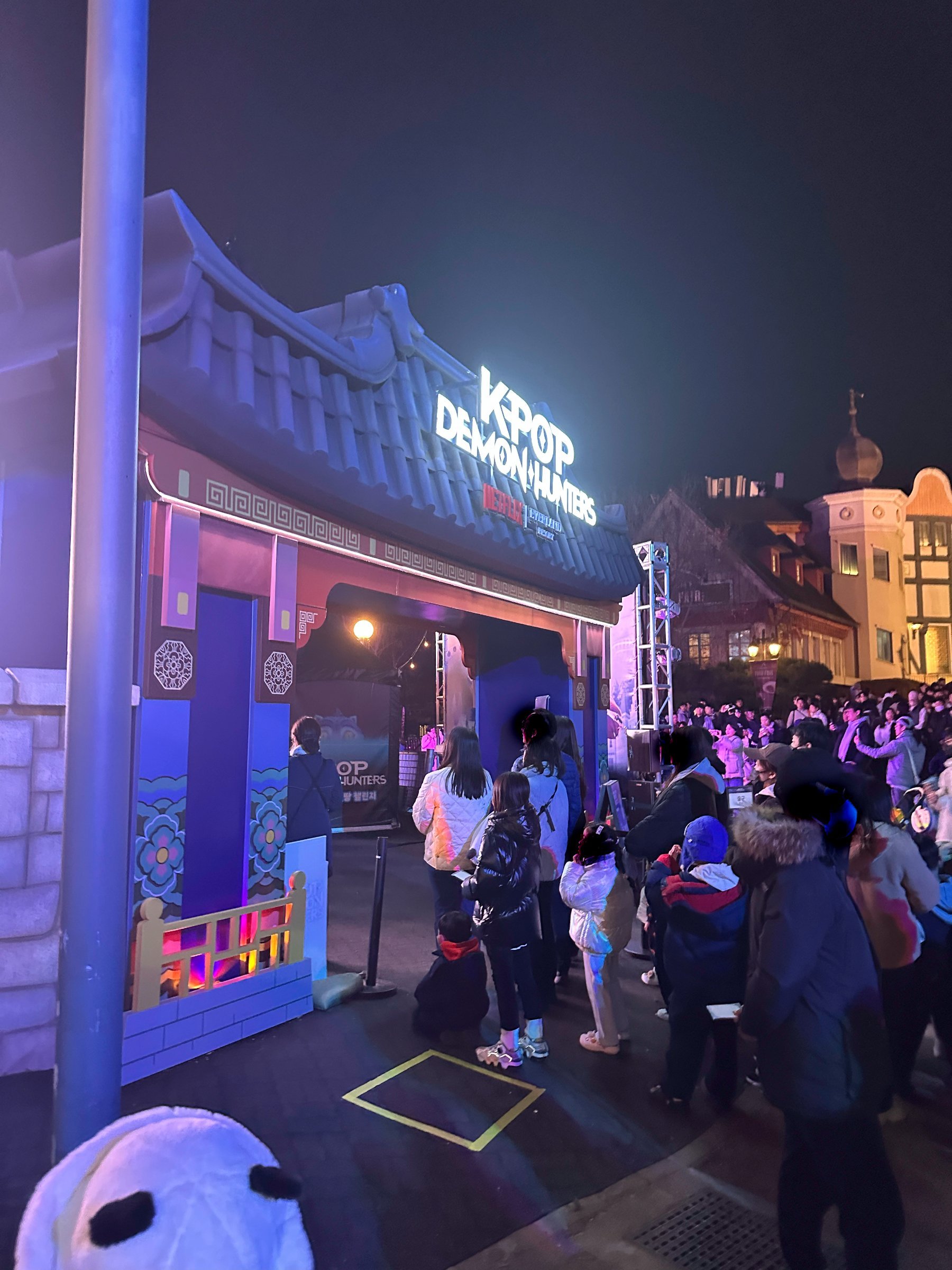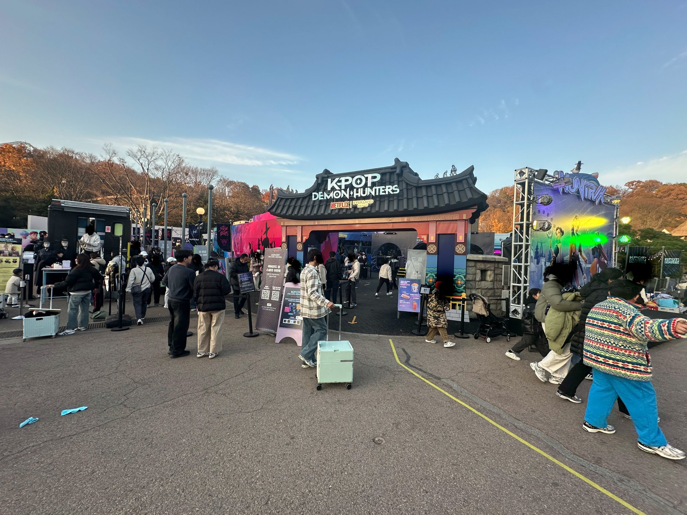 Garet Posted Monday at 11:54 AM Posted Monday at 11:54 AM K Pop Demon Hunters TR: I have never been interested in being first and so was never going to join a 7 hour line or visit the park when it was that packed but knowing my son is a fan of the movie, I promised we'd head out once crowds died down. This weekend crowds seemed to be hovering around 30 minutes so we headed out to the park. We picked up one of the after 3pm tickets and joined the entrance line with the express purpose of K-Pop Demon Hunters (so no second panda house in this TR). Most people in at 3 PM heading for K-Pop Demon Hunters or the new panda house. Our son just hit 130cm so wanted to try a ride he'd hit the height for: T Express, Hurricane & Championship Rodeo. We beelined for T Express but he changed his mind because of all the 'screaming', the RMC track parks make it sound like the whole train is full of people screaming over the airtime hills, so we walked back and he rode the breakdance. For anyone hoping for any sign of the RMC Giga, this was the only construction wall we saw. Apart from the K-Pop Hunters, there's also a Wizard of Oz overlay in the park. I know TPR are fans of the col-pop, and Everland have upped their game there. The K-Pop zone had attracted quite a crowd so we opted to head back at night since most of it is inside anyway. The outside photo zone for those who don't want to queue. Some of the snacks on offer, the stand up tables outside were themed to giant ramyeon cups but there were just too many people to get a picture. The line had died down to 30-40 minutes so we joined the line ready to head in. The area has 5 areas. A Huntrix area and Saja Boys area both with photo zone and 2 mini games, a DDR area, Derpy mini-game and merchandise store. And plenty of outdoor artworks to pose and take photos with. The reward area for playing all 4 mini-games. Huntrix area consisted of a Golden photo zone, airplane photo zone as well as a light gun shooting and whack a mole mini-game. Most of the merchandise we saw was either themed around these ramyeon cups (key chains) or the tiger (headbands or Everland's panda mascot dressed as the tiger) We didn't stop in the store because it looked crowded and there was a strict 2 item policy since a lot of it has been out of stock and resold online. Saja Boys area was indoors and dark so I didn't take photos but had a tilting ball mini-game and button mashing to the lyrics of songs. DDR with one minute tracks of Golden or Soda Pop was included but not needed for the mission reward. The Derpy area was a single chance to win a bonus sticker if you could tip the flower pot upright in less than 5 seconds. Only our son succeeded. Each mini-game gave you a stamp, that filled out the card above and rewarded you with a random Saja Boys or Huntrix card but they would switch cards for children to get who they wanted. A very popular area for Everland and a successful collabaration but unless you have someone whose a fan maybe not worth waiting if the line is long, and definitely not 7 hours for. If this was anywhere but Asia I'd assume this was a meet n greet as part of the park. But we've seen so many amazing cosplayers across Japan and Korea that I can't tell anymore and since I couldn't find a single mention of them on Everland's Social Media, I've blurred out the faces just in case (See post above about Everland's rules on posting). Either way all credit to these girls, who despite the cold, once a line formed let every child have photos with them and do a selfie and gave every child a great memory. The final collabaration was a sing a long fireworks shows set to some of the hits from the show. I've attached a video, I'm not sure how well it will show on the forum so please let me know if you can't see it and I'll try to save it to my google account for Youtube. Sorry for the bumps but two problems I had: 1) Korea has a mat reservation problem (all parks, not just Everland). Imagine the hotel sunbeds and towels situation but across the parade routes and viewing areas. At least in Japan people stuck with their space but here they throw a mat down and leave for hours. Everland in theory, has a strict no mats policy and signs everywhere. Unfortunately it's impossible to enforce, because when there's 100s of mats and personal belongings how do you take them away without guests exploding or overwhelming lost and found. Also imagine that Titanic door scene but there are 5 Jack's and they all want to live. The tiny mats next to our space would have families of 6 show up and then all try to squish into their space and step over people 5 minutes before start time so I got knocked by some elbows a few times while filming. 2) Korean theme parks sell those telescopic stools everywhere. Since the fireworks are a sit down show, a lot of people used them to not touch the cold ground. However, once the crowds came in I noticed a few would slightly extend theirs just enough to give themselves a boost but not enough to be obvious to staff. Since I was shooting from below head height to not disturb people there wasn't much I could do about some of the heads in front. 27.MOV 2
