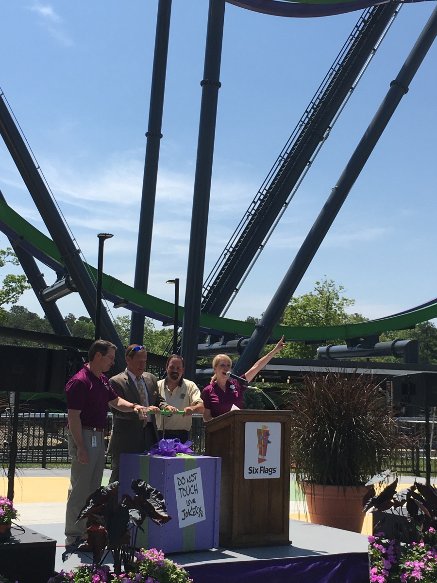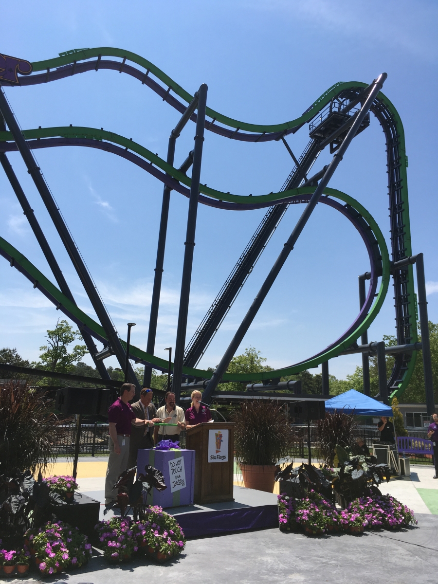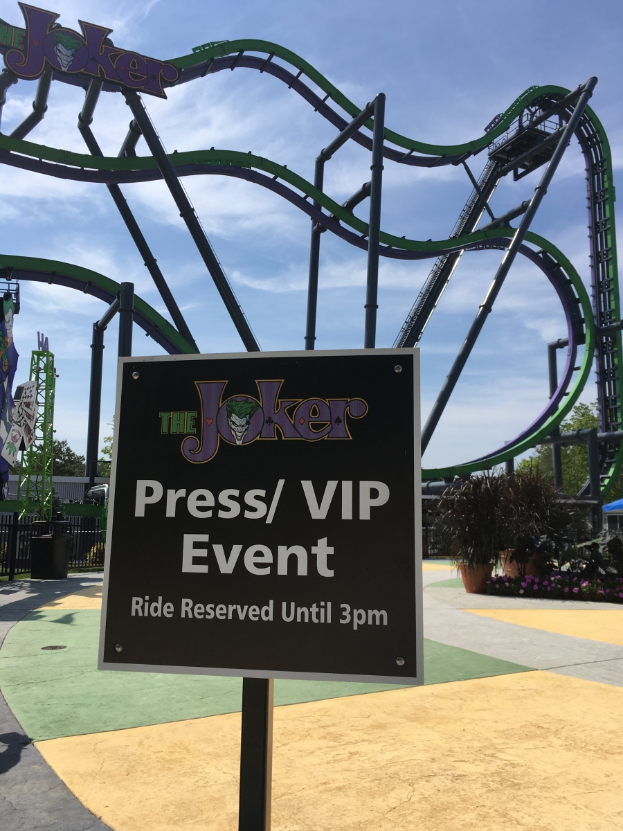 DerekRx Posted May 27, 2016 Posted May 27, 2016 (edited) Today The Joker had its media preview briefly before the Clown Prince of Crime decided he was done cooperating for the day. I was only fortunate enough to get one ride on it before it ran into issues with the dampeners being too loose, allowing a car to swing up above the standard zone going into the station and preventing the ride from correcting itself to vertical for disembarking, but that issue should be fixed soon. That one ride (green rail, facing forward) was quite enjoyable and fun with some good G forces in the 6 "inversions" we experienced. It's very similar to Batman at Fiesta Texas which I rode last year, though the fin placement on this one did seem different. I didn't get to ride the purple rail, but it did appear to have different fun placement from the green, and therefore would be a different ride experience, so ride both sides when you visit. As the first free spinning 4D on the East Coast, it's a great addition to the park's already impressive assortment of coasters and will continue to bring both fear and pleasure to all who face the challenge. Onto pics... Back at Six Flags Great Adventure, where just the view from the parking lot screams "yes, we have roller coasters!" Now that we've stuffed ourselves with food and sweets, let the opening ceremonies begin! Hey look kids, it's Joe Piscopo! Joe Piscopo is the spokesman for the Boys and Girls Clubs in New Jersey. Some of their shining stars were the first to take on The Joker ...And Joker takes on its first riders "Love that Joker kettle corn" The reason we're here! Oreo chocolate mousse fit for Mr J Some very Jokeresque dessert options Before we flip, we slide! Time to open tbat gift from Mr J Normally I shy away from opening any presents from deranged psychopaths, yet alone ones with plungers, but what do I know! Thanks for having us out today, Joker and Six Flags Great Adventure. Can't wait to come back and ride your new coaster again soon! Warning sign and restrictions. No fanny packs or glasses (even with a strap) allowed A look at Joker's trains Joker makes his base of operations at the former site of the dolphin stadium Great weather for flipping in Jersey By this point everyone should have enough Joker Toxin in them to not stop laughing The purple and green confetti goes flying... About 3/4 of the way through the queue there is a single Rider split off. There's also a separate Flashpass entrance that will meet with the regular queue right before the split between the green rail and the purple rail Flipping good time! Very comfy restraints make this 4D sensation even more enjoyable Edited May 27, 2016 by robbalvey