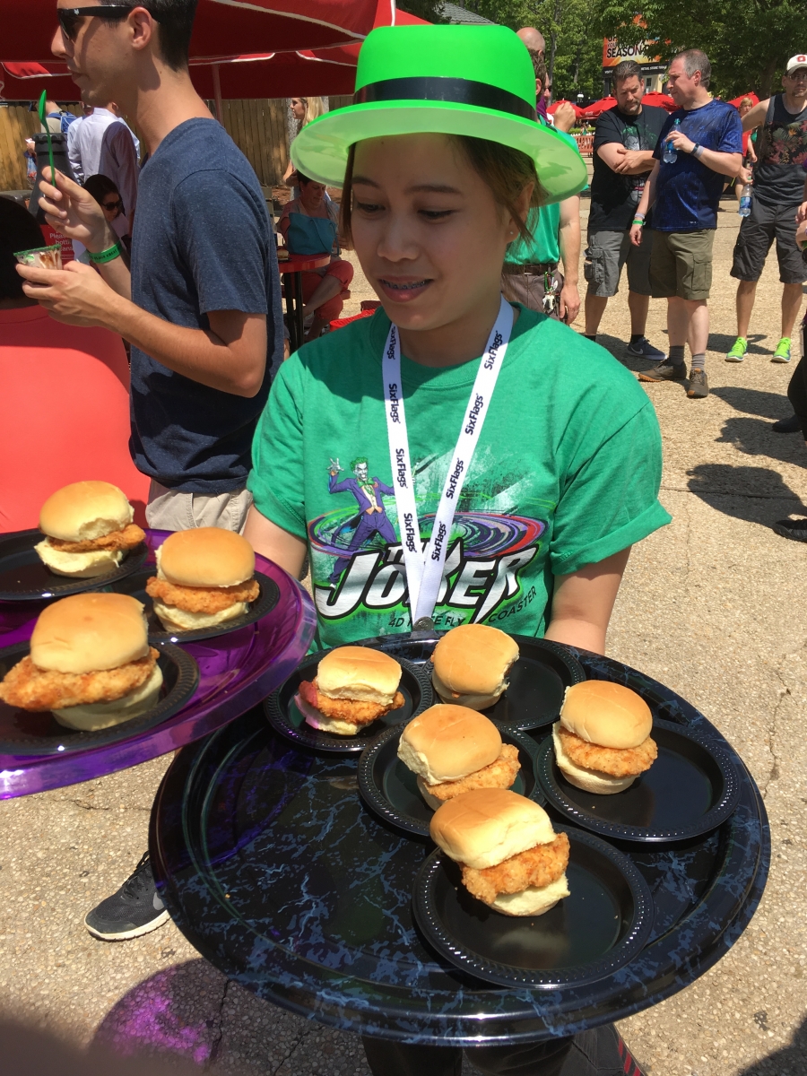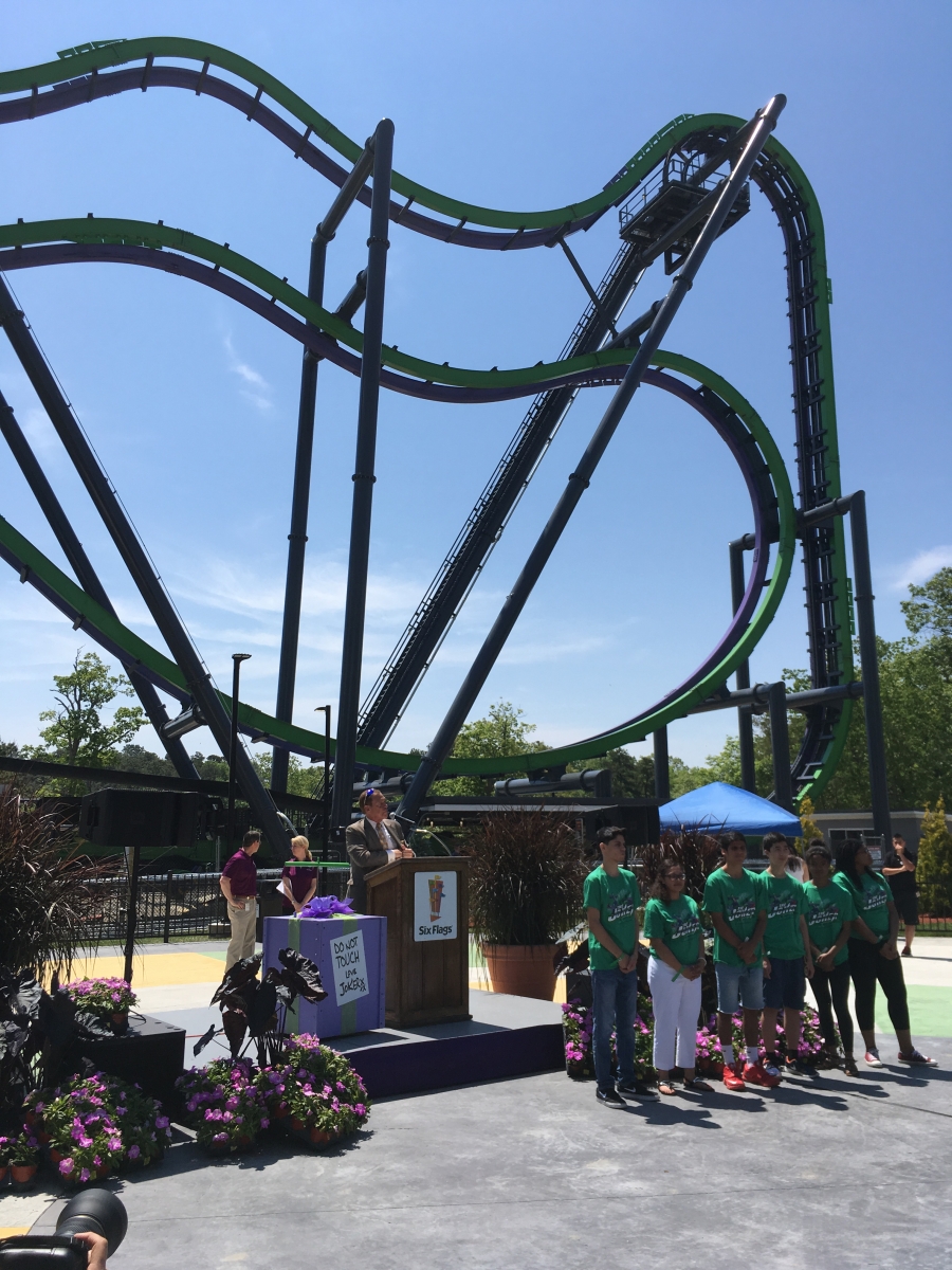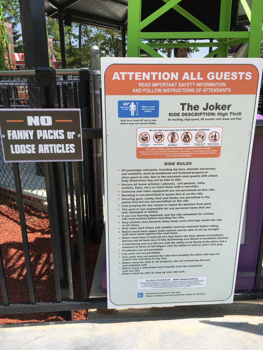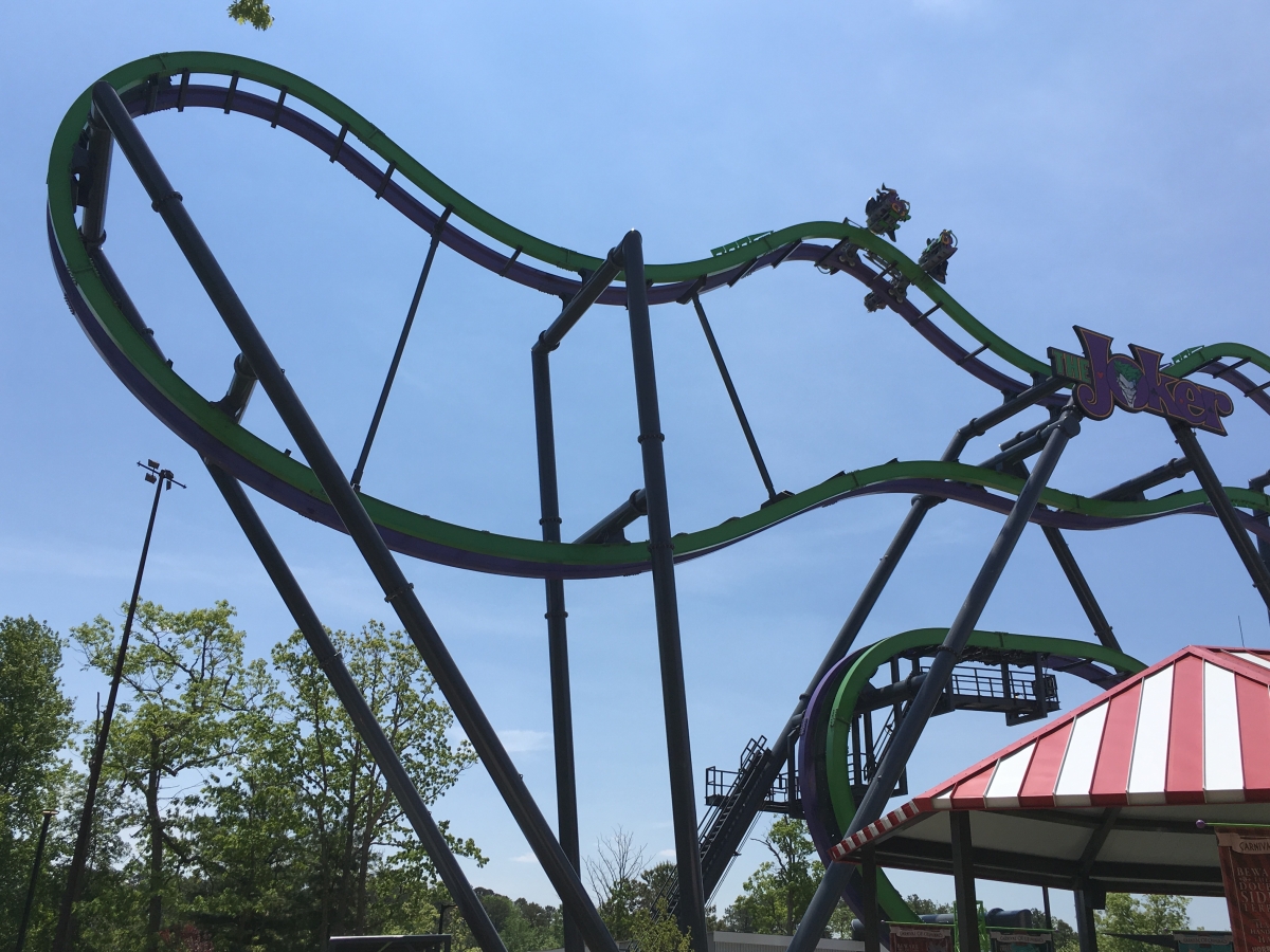 DerekRx Posted May 27, 2016 Posted May 27, 2016 (edited) Today The Joker had its media preview briefly before the Clown Prince of Crime decided he was done cooperating for the day. I was only fortunate enough to get one ride on it before it ran into issues with the dampeners being too loose, allowing a car to swing up above the standard zone going into the station and preventing the ride from correcting itself to vertical for disembarking, but that issue should be fixed soon. That one ride (green rail, facing forward) was quite enjoyable and fun with some good G forces in the 6 "inversions" we experienced. It's very similar to Batman at Fiesta Texas which I rode last year, though the fin placement on this one did seem different. I didn't get to ride the purple rail, but it did appear to have different fun placement from the green, and therefore would be a different ride experience, so ride both sides when you visit. As the first free spinning 4D on the East Coast, it's a great addition to the park's already impressive assortment of coasters and will continue to bring both fear and pleasure to all who face the challenge. Onto pics... Back at Six Flags Great Adventure, where just the view from the parking lot screams "yes, we have roller coasters!" Now that we've stuffed ourselves with food and sweets, let the opening ceremonies begin! Hey look kids, it's Joe Piscopo! Joe Piscopo is the spokesman for the Boys and Girls Clubs in New Jersey. Some of their shining stars were the first to take on The Joker ...And Joker takes on its first riders "Love that Joker kettle corn" The reason we're here! Oreo chocolate mousse fit for Mr J Some very Jokeresque dessert options Before we flip, we slide! Time to open tbat gift from Mr J Normally I shy away from opening any presents from deranged psychopaths, yet alone ones with plungers, but what do I know! Thanks for having us out today, Joker and Six Flags Great Adventure. Can't wait to come back and ride your new coaster again soon! Warning sign and restrictions. No fanny packs or glasses (even with a strap) allowed A look at Joker's trains Joker makes his base of operations at the former site of the dolphin stadium Great weather for flipping in Jersey By this point everyone should have enough Joker Toxin in them to not stop laughing The purple and green confetti goes flying... About 3/4 of the way through the queue there is a single Rider split off. There's also a separate Flashpass entrance that will meet with the regular queue right before the split between the green rail and the purple rail Flipping good time! Very comfy restraints make this 4D sensation even more enjoyable Edited May 27, 2016 by robbalvey