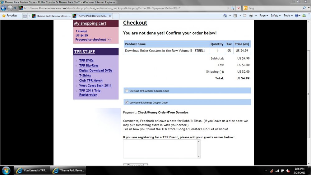 A.J. Posted February 24, 2011 Posted February 24, 2011 (edited) Initiating Play-by-play. Proceeded to checkout okay. Got my coupon redeemed - total is $0.00. Edited February 24, 2011 by A.J.