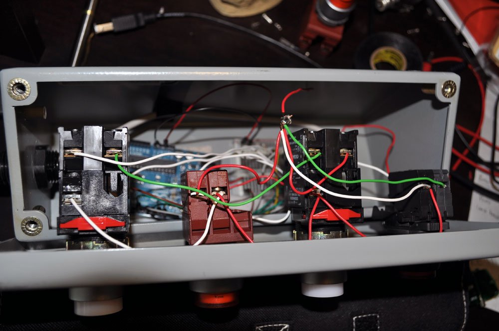 BrandonR Posted August 5, 2011 Author Posted August 5, 2011 Here are the pictures. I didn't want to connect all the wires again (it was a pain having to do it with needle-nose pliers) so access was limited. Contact blocks for the buttons and LED lights. The Arduino microcontroller that controls everything. The breadboard connects it all together, along with some pull-up (or is it pull-down?) resistors.