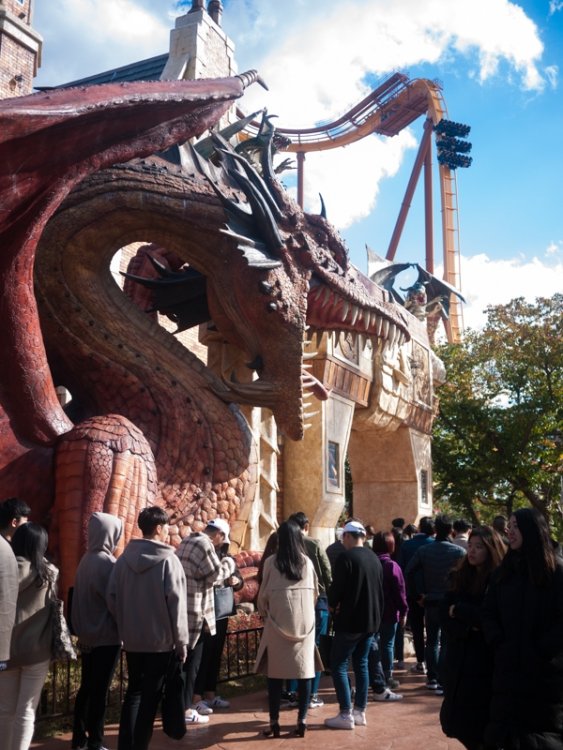 Garet Posted November 6, 2018 Author Posted November 6, 2018 Final part I don't know how I missed the rapids ride on my first walk around considering it had not 1 entrance sign..... ....not two.... .... but three signs. On your canyon adventure, you will see dinosaurs... ... old wooden buildings... ...water guns... ...rapids.... ...Indians and a drowning man. This ended up being the only ride I didn't ride. I had a return train and it was re-riding both roller-coasters or riding this and choosing one of them. This seemed to be an upcharge so I ended up carrying on walking. For what was only 10C weather the water rides were packed. The flume was quite hard to photograph. This was taken from the photo zone. This old roller coaster is now a backdrop to become a highly themed smoking area. Again the park really tried to theme up what could have easily just been a generic ride. The park must be making a fortune selling these ponchos. Every rider was buying one and bags to cover their shoes. ...until I saw the wave... ... You couldn't even see Phatheon's lift hill behind it. I've seen some parks drain or lower the water to reduce the splash. I remember going to USJ and getting lightly sprinkled on Jurassic Park and Splash Mountain at TDL in weather like this. Gyeongju World doesn't seem interested in doing that. There's a boat in there somewhere. This ride was insanely popular for the cold weather, considering how soaked you got. I briefly entertained riding... I ended my day with one last ride on Draken. Since the queue was longer I had a lot of time to stand under the dragon. With the sun starting to set, I headed out of the park for my bus, two trains and a 40 minute drive home. I will definitely be back to visit this park again.