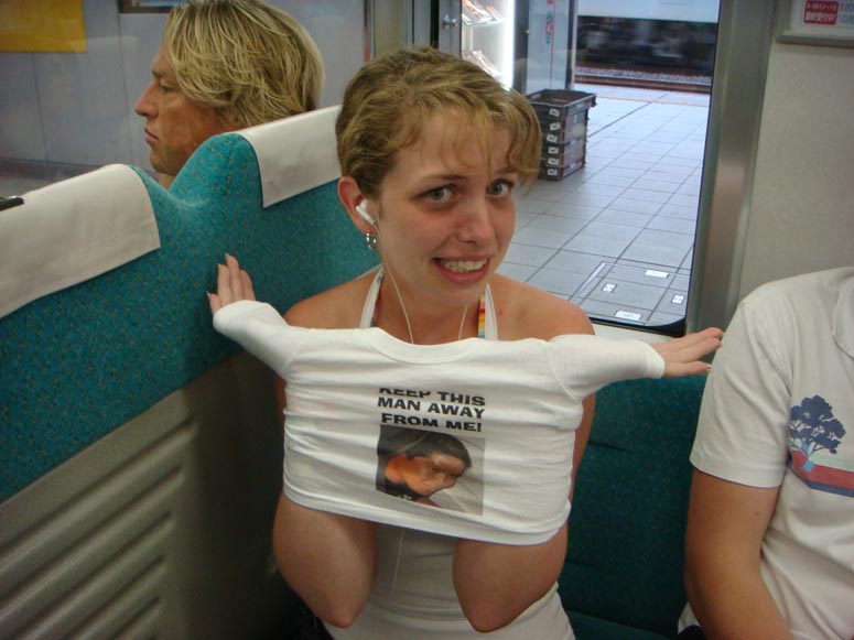 Thanks to Reed & Stacy, KidTums has a shirt to warn the local police to help keep scary stalkers away!