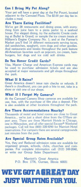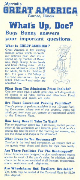 1978 Marriott's Great America Park Brochure - Mark's Postcard Paradise - Page 1