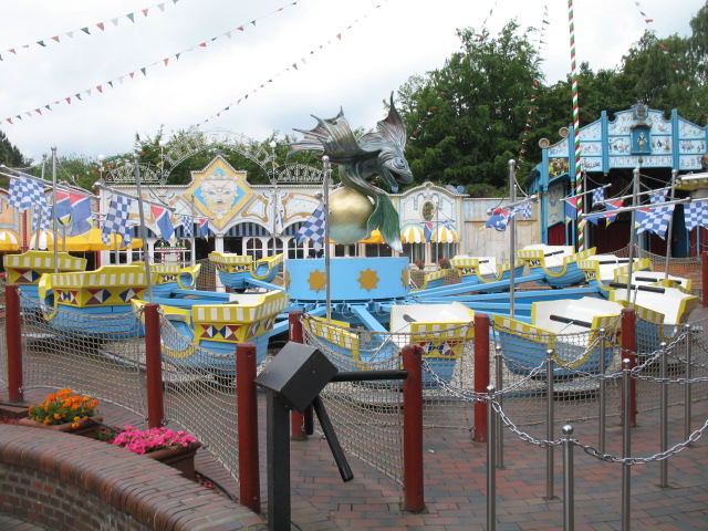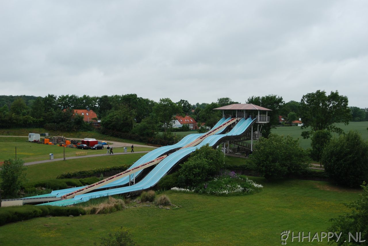 | Hansa Park has taken quite a few steps beyond its origins as the original home of Legoland, especially with Fulch von Novgorod, a world-class launched coaster. Theming is a bit inconsistent here—for example, Bonanza City, a good “Wild West” town, gives way to an expansive area of grass with rides plunked down on it, and they could use a good dark ride. But there are ambitious plans to remake the park’s entry way into a tribute to the cities of Europe, with theming on a par with Universal and Disney. As it stands now, with its four coasters, water and flat rides, ropes course, and play areas, there’s plenty for all age groups at Hansa. | |