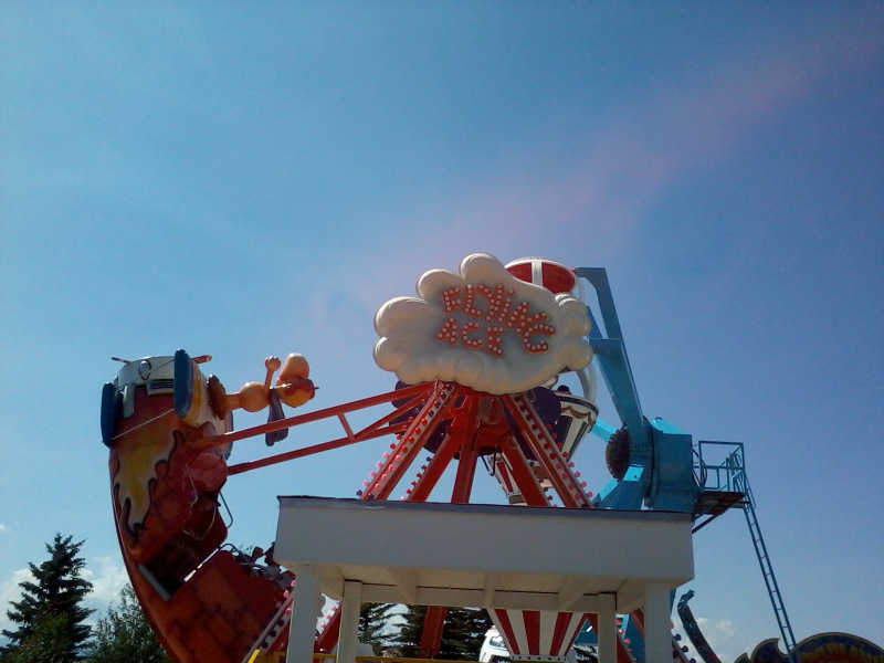 Calaway Park is a family friendly amusement outside of Calgary and close to the Rocky Mountains. The park originally opened with a Hanna Barbera licensing agreement and many of the Flintstone theming can still be found in the front of the park.