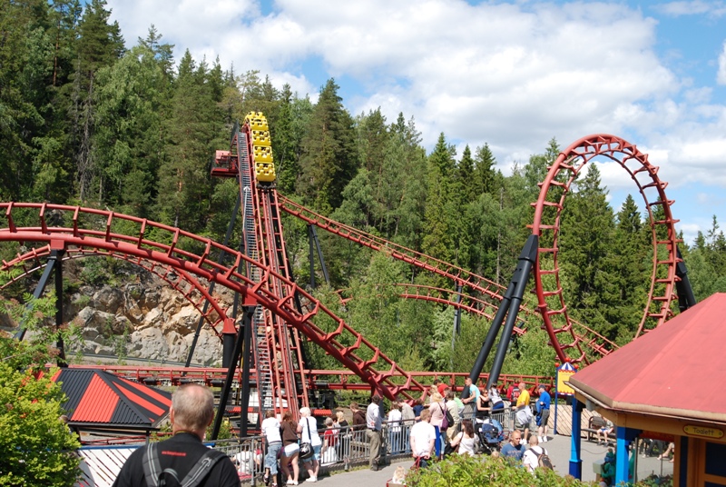 TusenFryd has the coolest park entrance ever as you ride an escalator through one of Speed Monster's inversions (the park's launched Intamin coaster). The park is quite hilly in areas, and you can really get worn out if you don't take your time walking around, so try all the attractions in each area before moving on.