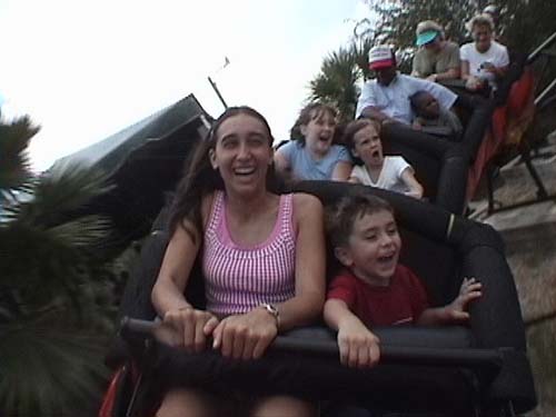 Elissa and Dallas survive the 'air powered' kiddie coaster!