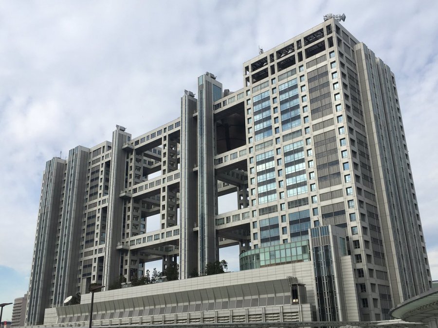 This morning we are heading to Tokyo Joypolis at the Tokyo Decks! Here's the crazy looking Fuji TV building just outside!