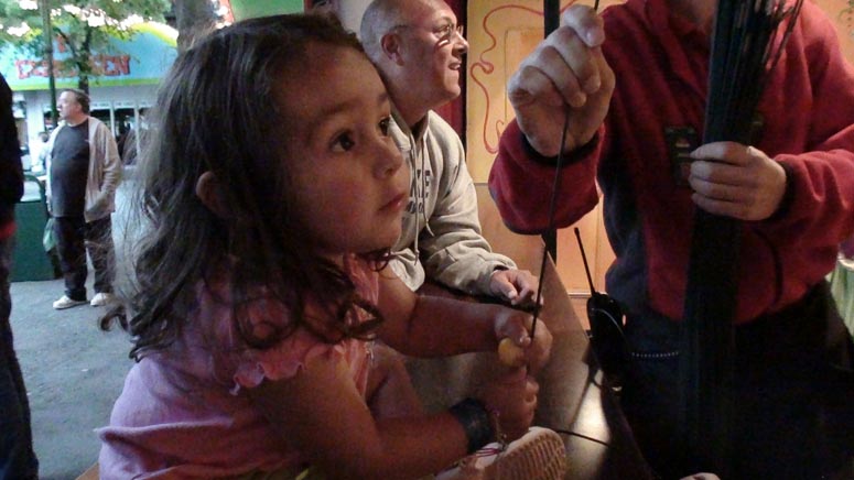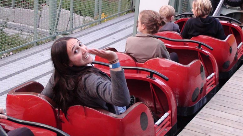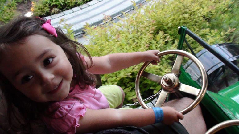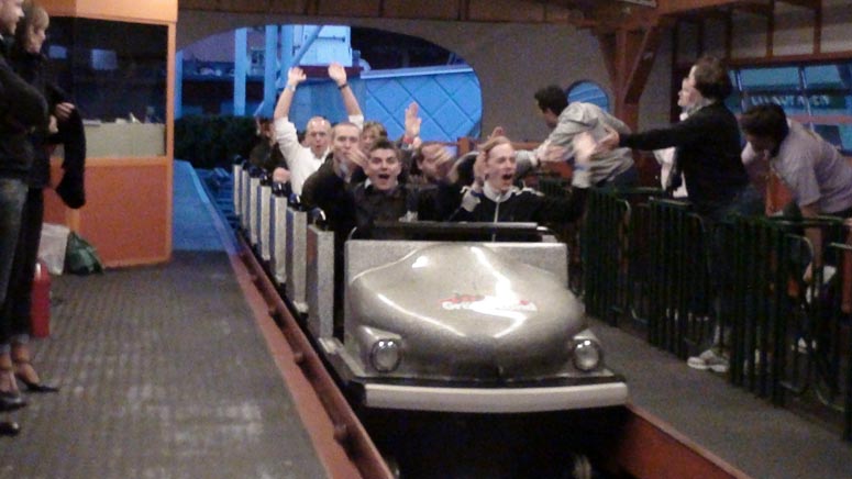 Hanno isn't used to the high speeds and intense G-Forces of the kiddie coaster.