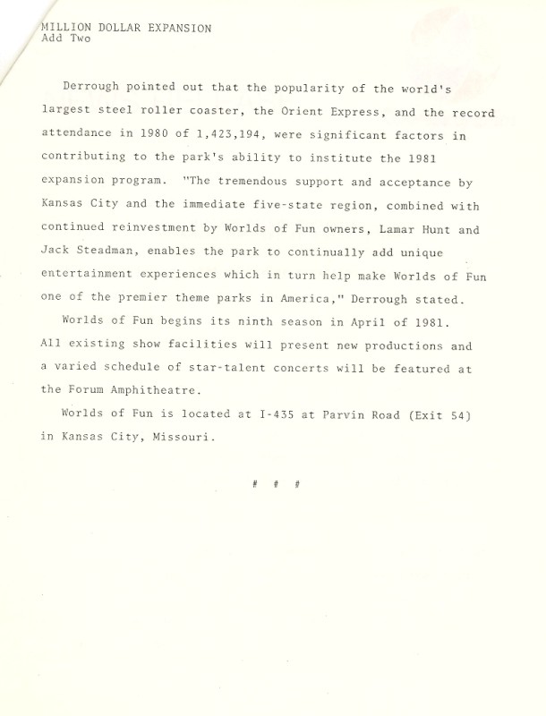 Click here for Page 2 of 1981 Park Magazine and Press Releases Photos