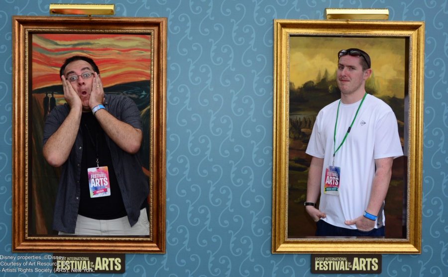 This PhotoPass photo op is hilarious & amazing! Who looks better? Me as The Scream or Craig as Mona Lisa?